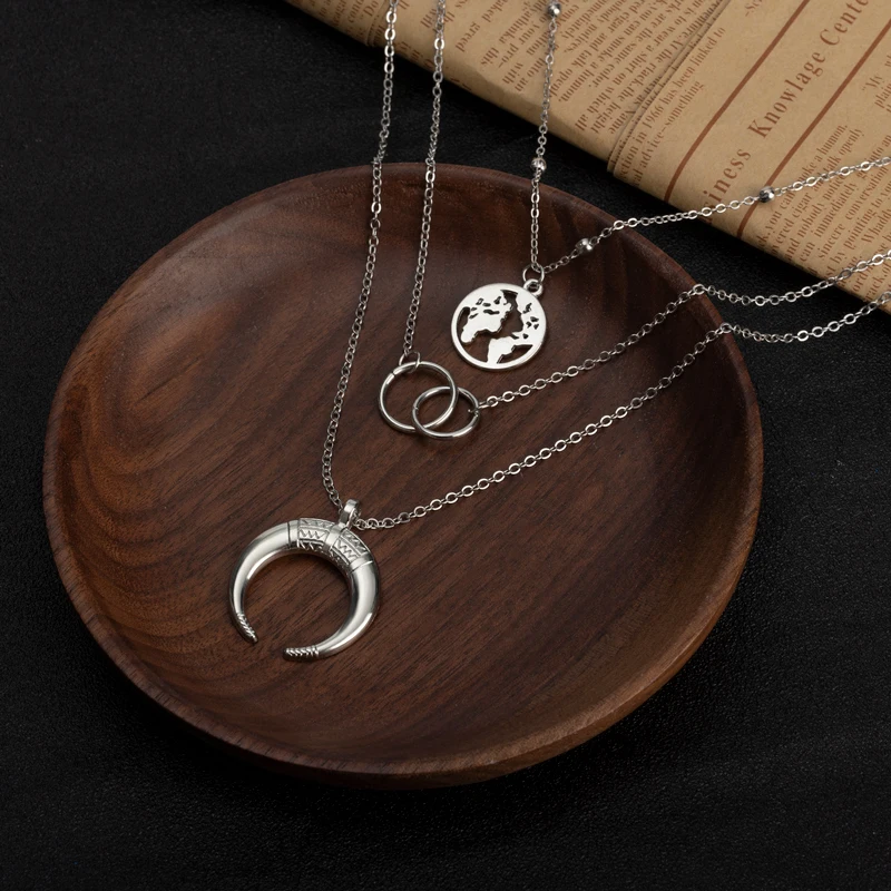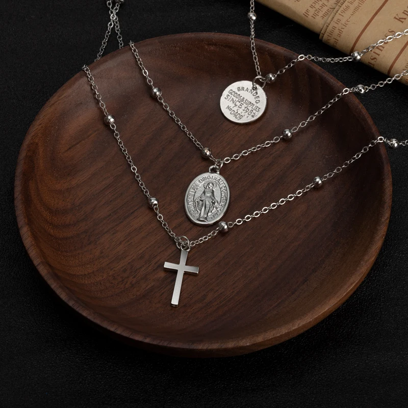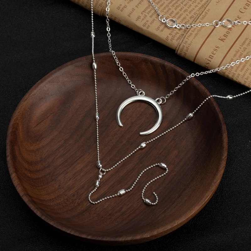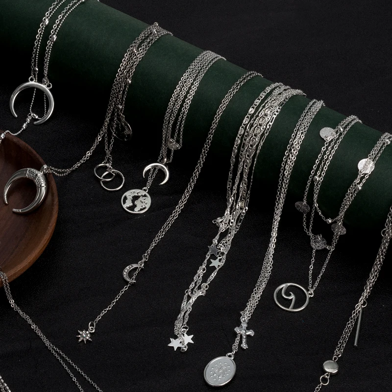 Женское многослойное ожерелье ZWC, ожерелье с подвеской в виде Луны, звезды, Креста, полумесяца, 2021, ювелирные изделия, бисер серебряного цвета