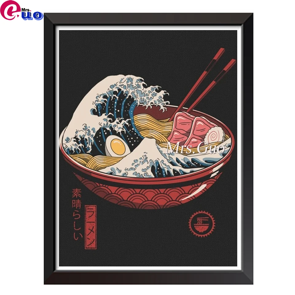 DIY алмазная живопись, полная квадратная/круглая 5d алмазная вышивка, большая рамен волна картина, Алмазная мозаика, кухонный Декор