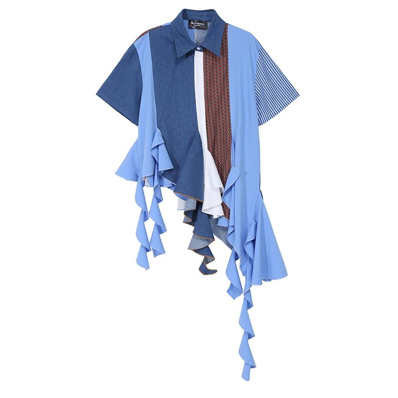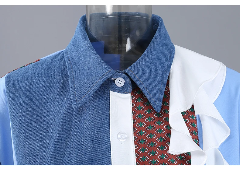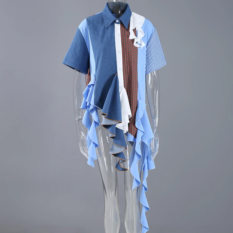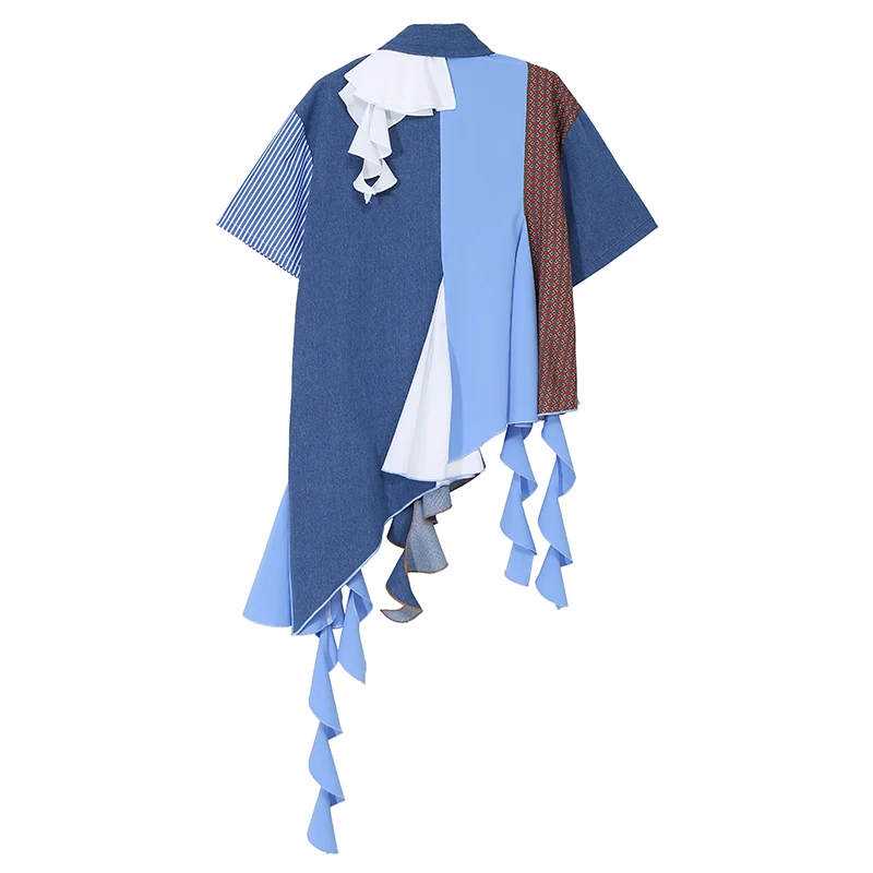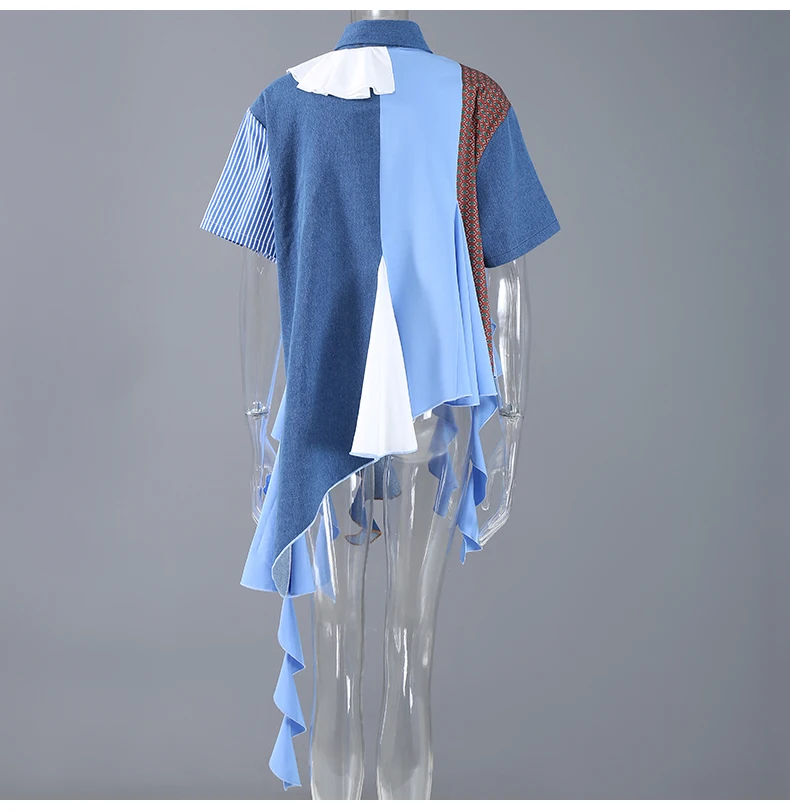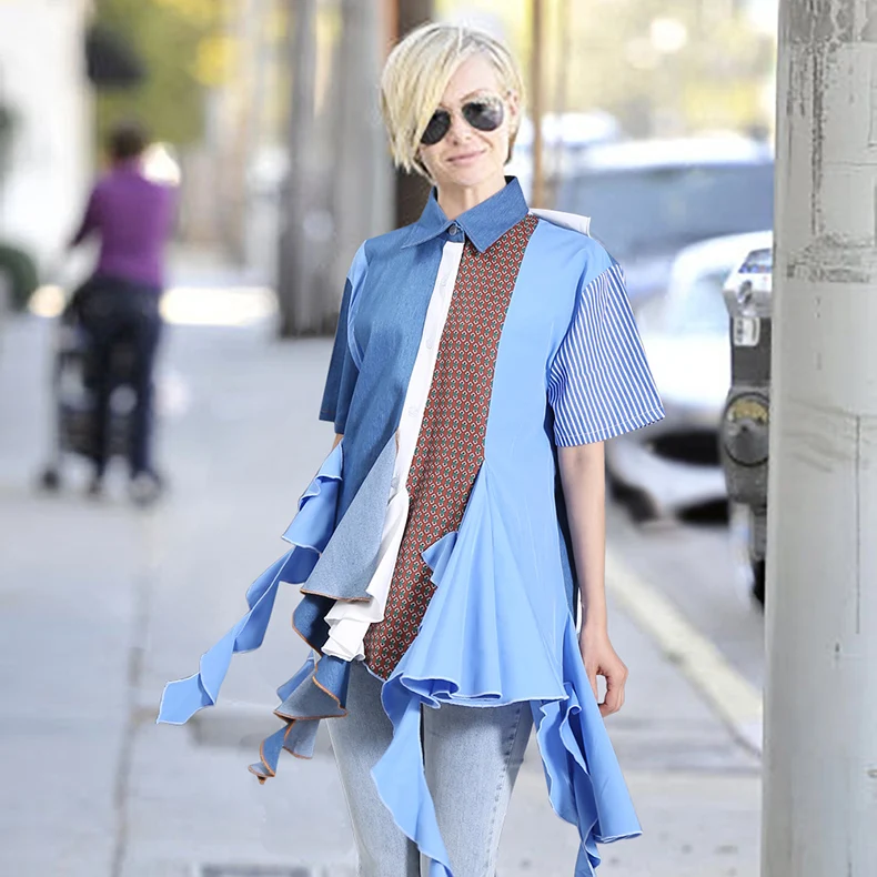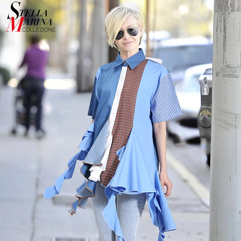 Женская Асимметричная блузка, Повседневная голубая рубашка большого...