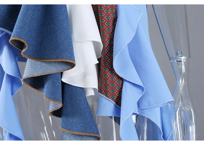 Женская джинсовая юбка составного кроя, Повседневная синяя трапецие...
