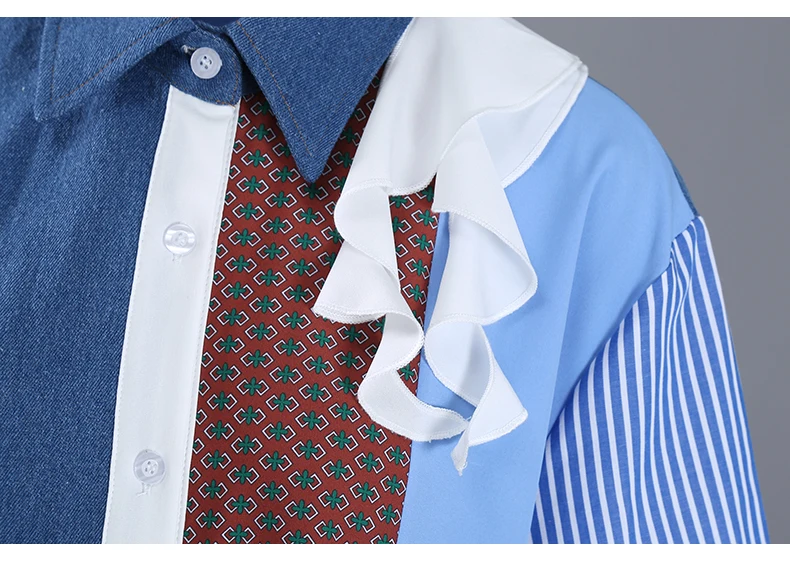 Новинка; Женские свободные синие джинсовые Лоскутные дизайнерские п...
