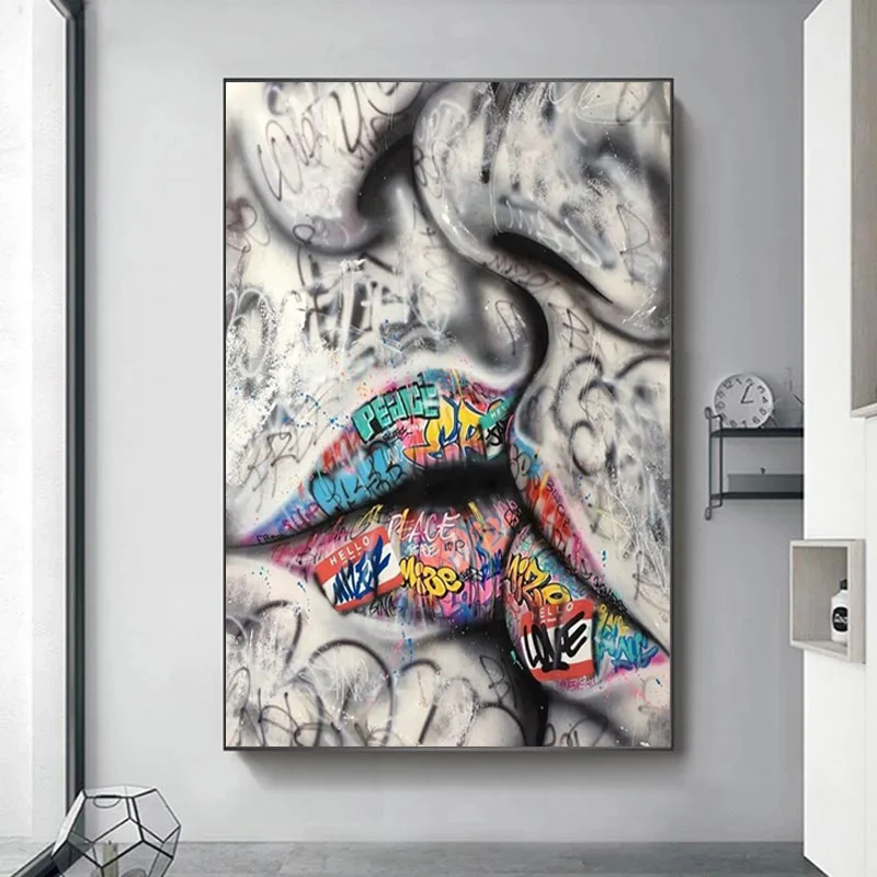Картина на холсте с изображением любителей целующейся улицы граффити, плакаты и принты, Настенная картина для гостиной, домашний декор