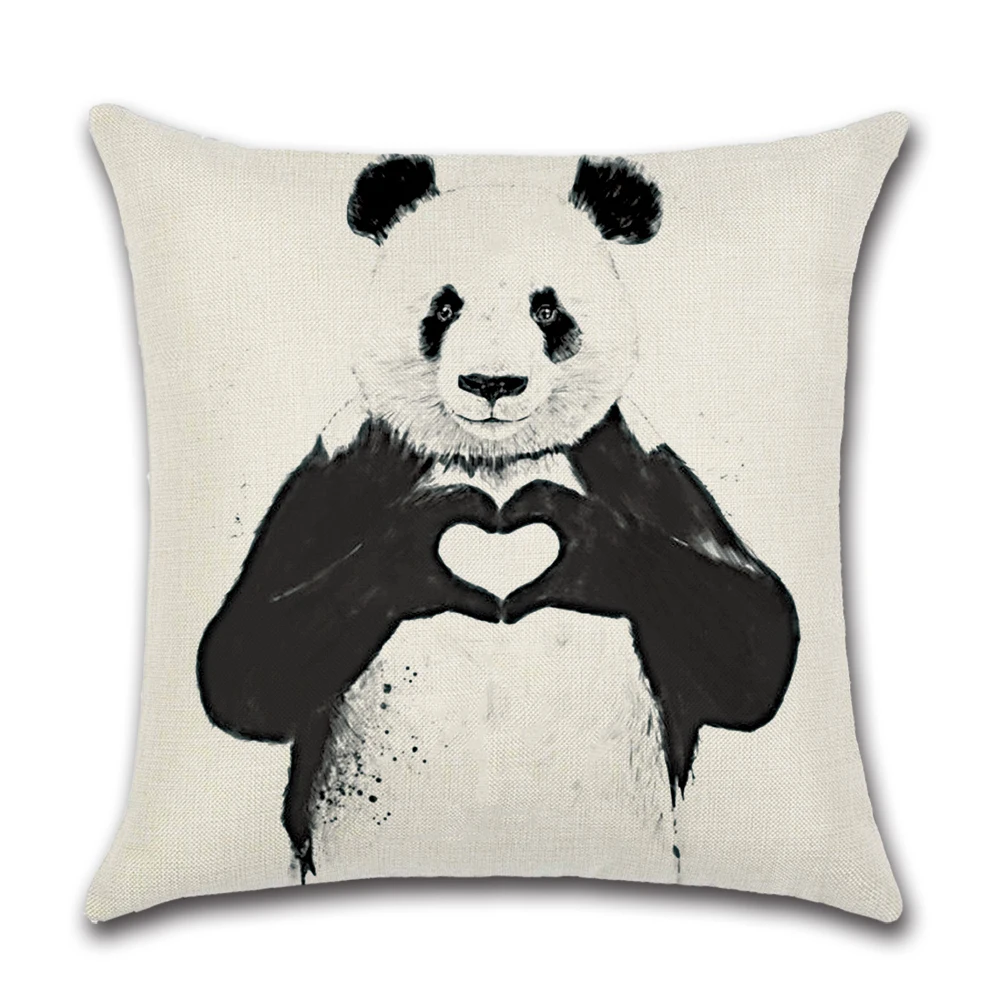 Милый мультяшный чехол для подушки панда хлопковая льняная декорати...