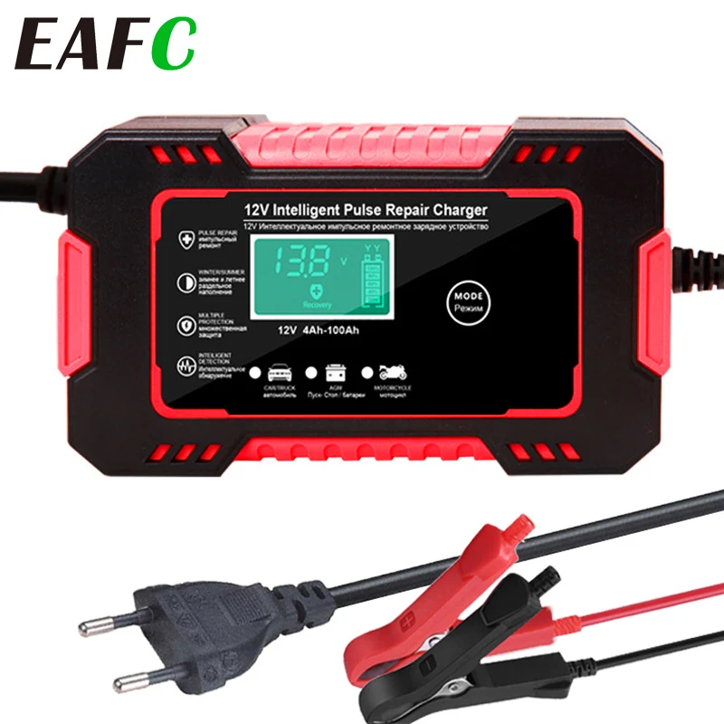 Автомобильное зарядное устройство для мотоцикла 12В 6А, интеллектуальная автоматическая быстрая зарядка, влажный сухой свинцово-кислотный ЖК-дисплей