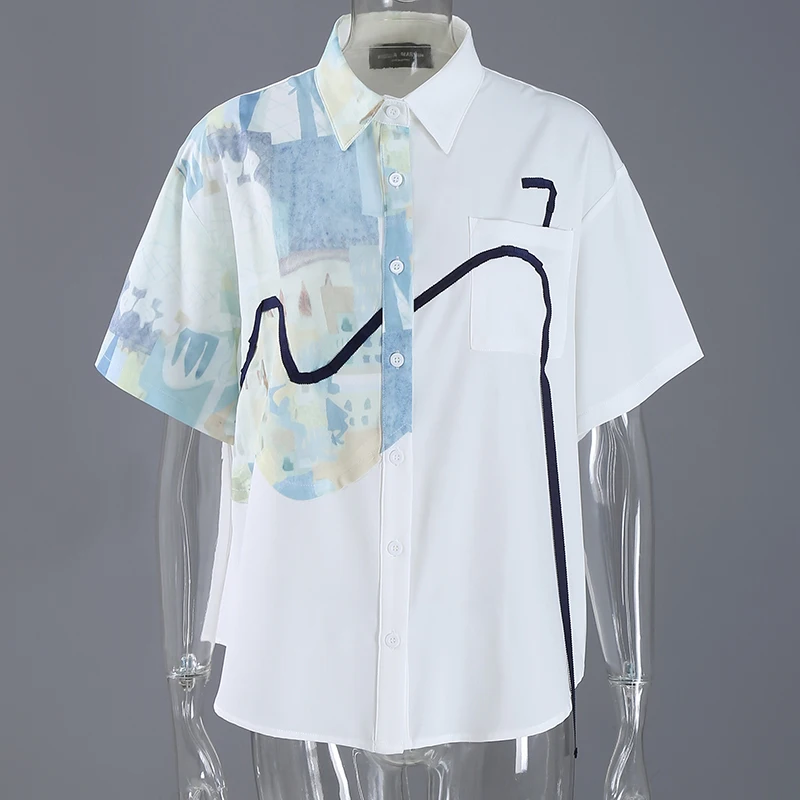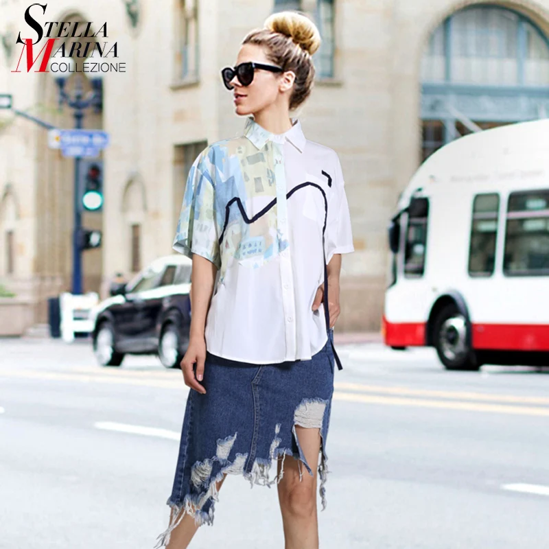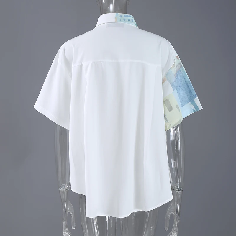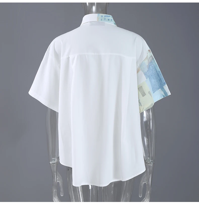 Новинка 2021 размера плюс Летняя одежда женская белая блузка с принтом женская повседневная одежда с коротким рукавом Свободная сорочка femme стиль 8362