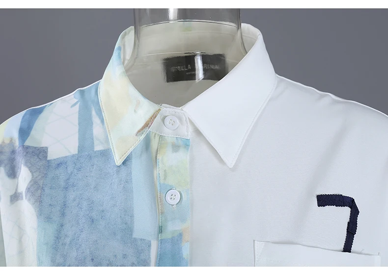 Женская Асимметричная блузка, Повседневная голубая рубашка большого...