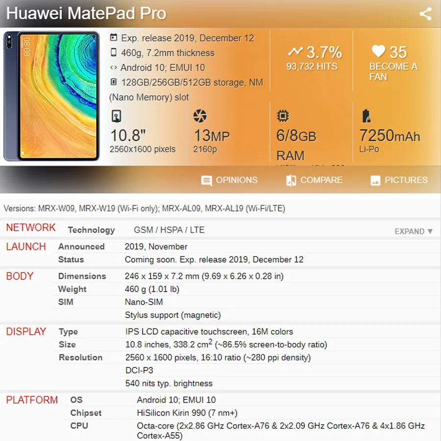 Модельная совместимостьFor Huawei MatePad Pro 10.8 2019 MRX-W09 W19 AL09 AL19