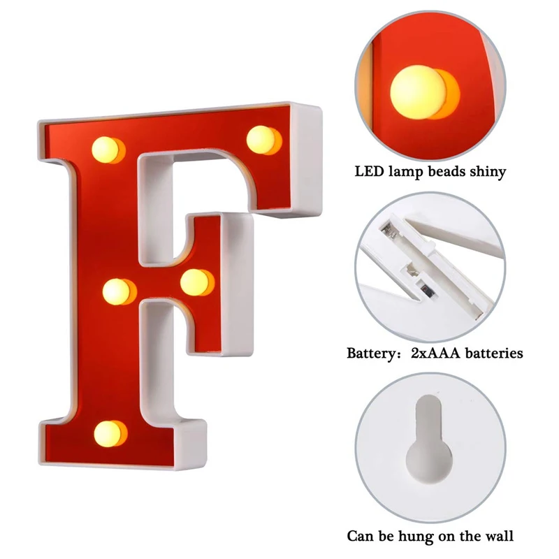 Удобство:Светильники с буквами портативны и универсальны. Его можно повесить (с прорезью для замочной скважины на задней панели для удобного подвешивания) на стену, изысканно и мило, можно разместить в любом месте.