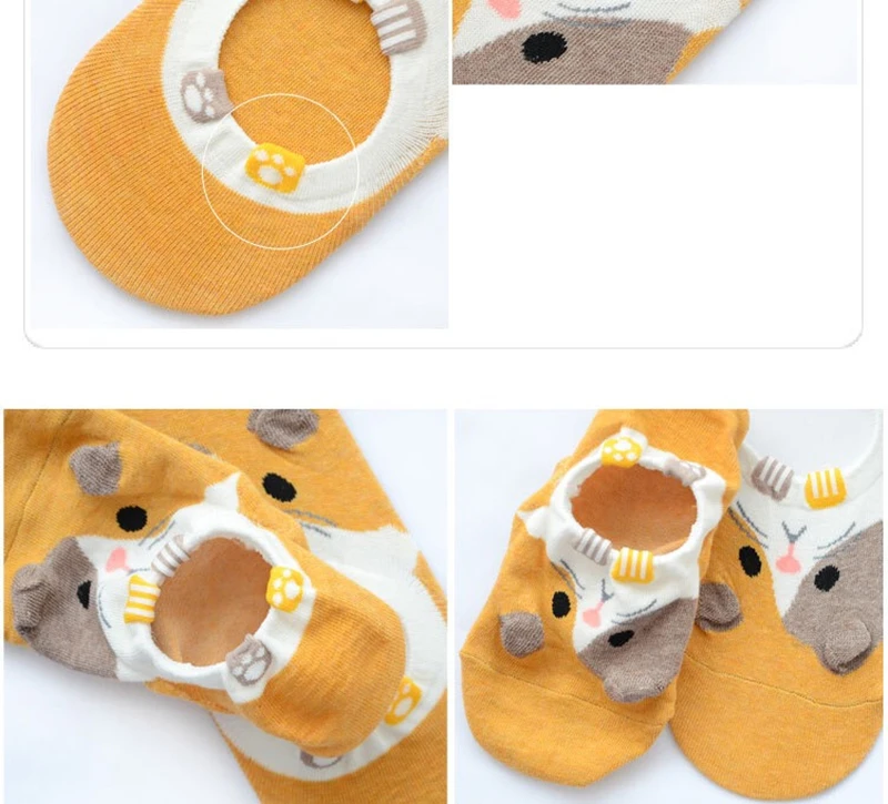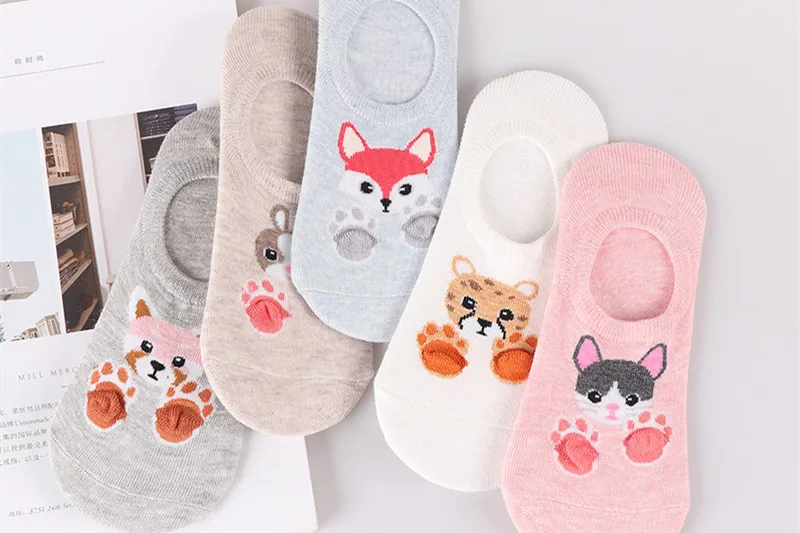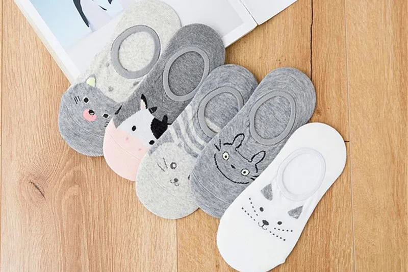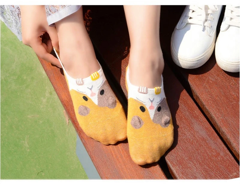 Носки-невидимки с животными в стиле Харадзюку женские, летние Смешн...