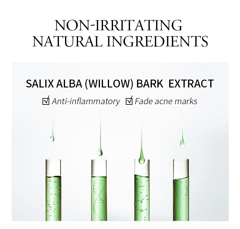 Экстракт коры SALIX ALBA (WILLOW) 1. Антифламматория 2. Выцветание следов акне экстракт листьев алоэ барбаденсис 1. Контроль жирности 2. Удаление акне и прыщей глицерин 1. Увлажнение сухой кожи 2. Разглаживание огрубевшей кожи