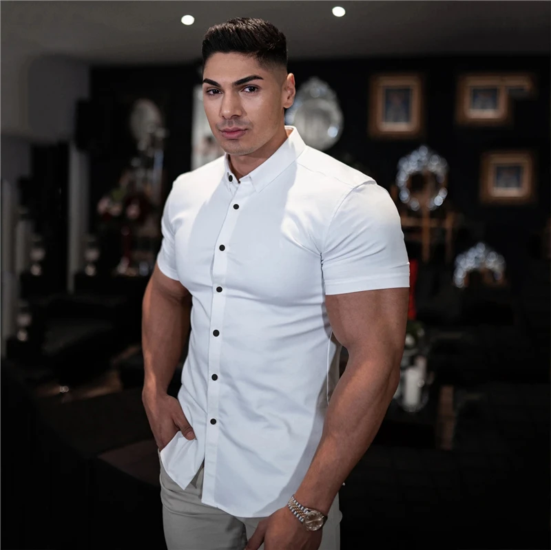 Рубашка мужская для бега с коротким рукавом, модная спортивная супер облегающая Деловая одежда, одежда для спортивного зала и фитнеса, лето