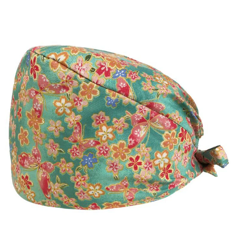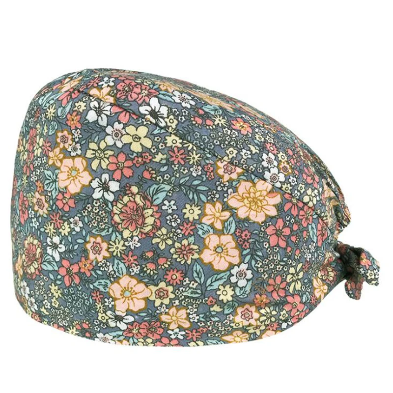 Шапка для медсестры с цветочным узором, регулируемая шапка с разным...