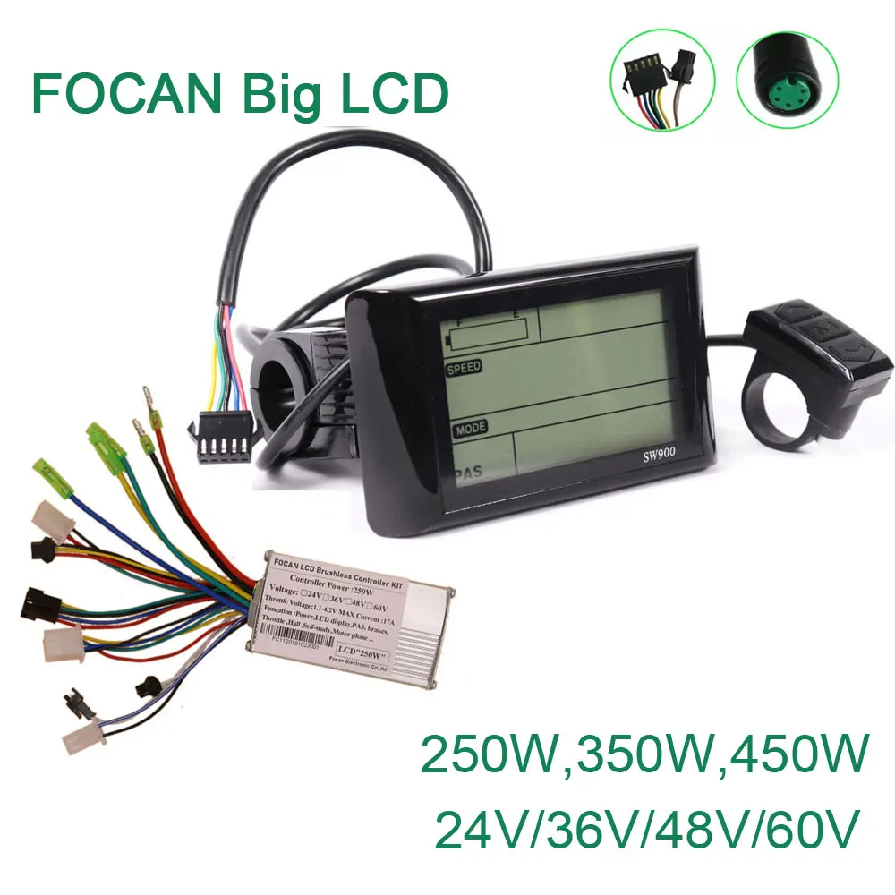 FOCAN 24 в 36 в 48 в 250 Вт 350 Вт бесщеточный контроллер двигателя постоянного тока контроллер электровелосипеда + SW 900 большой ЖК-дисплей, один комплект