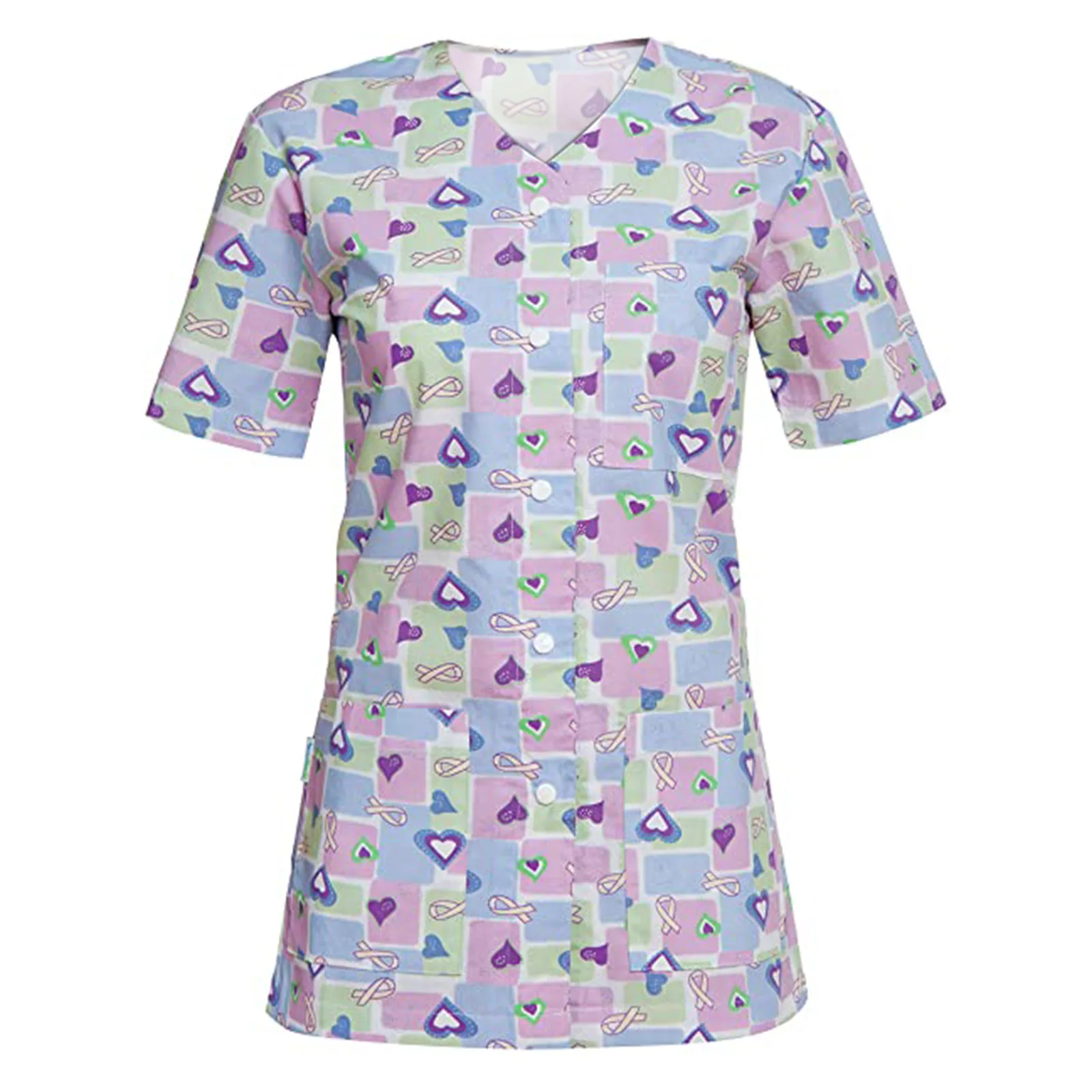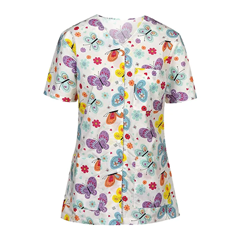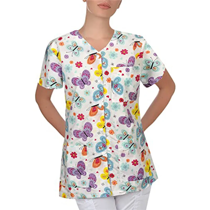 Женский Короткий комбинезон с животным принтом, повседневная Однорядная футболка с пуговицами и рукавом с V-образным вырезом, униформа медсестры, больничный комбинезон, новинка 2021