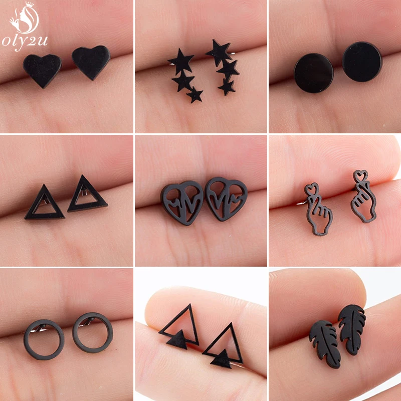 Серьги-гвоздики из нержавеющей стали для мужчин и женщин, небольшие геометрические украшения для ушей в стиле панк, простые круглые сердца, треугольник, звезды, модный подарок