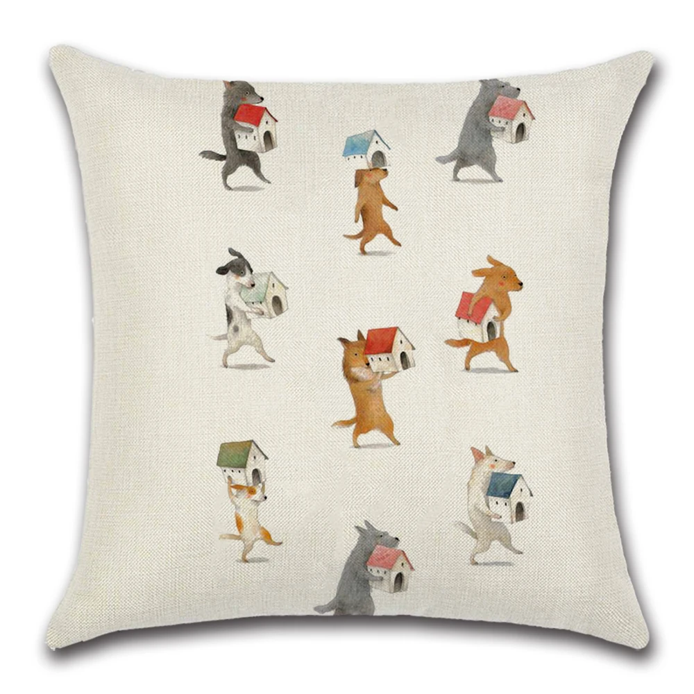 Льняной чехол для диванной подушки с милым рисунком совы, 45*45 см