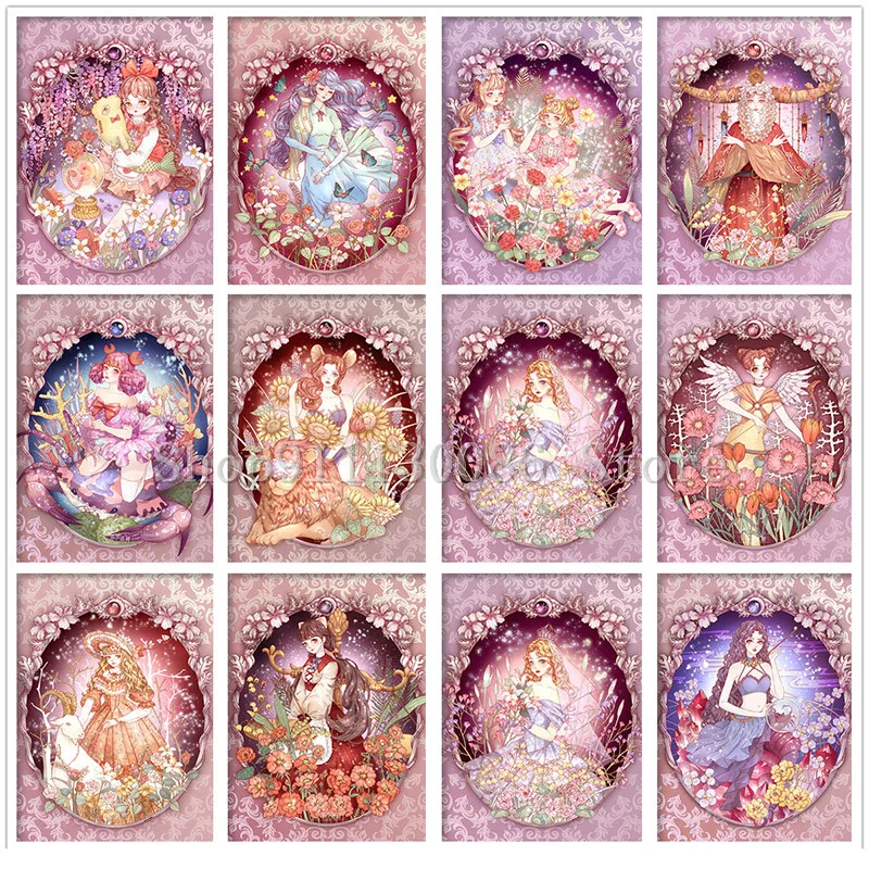 Алмазная 5D картина сделай сам с двенадцатью созвездиями, мультяшная девушка, цветок, мечта, Алмазная мозаика, вышивка крестиком, украшение для детской комнаты