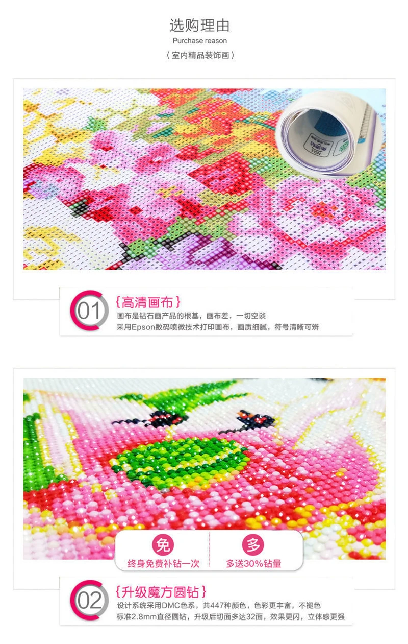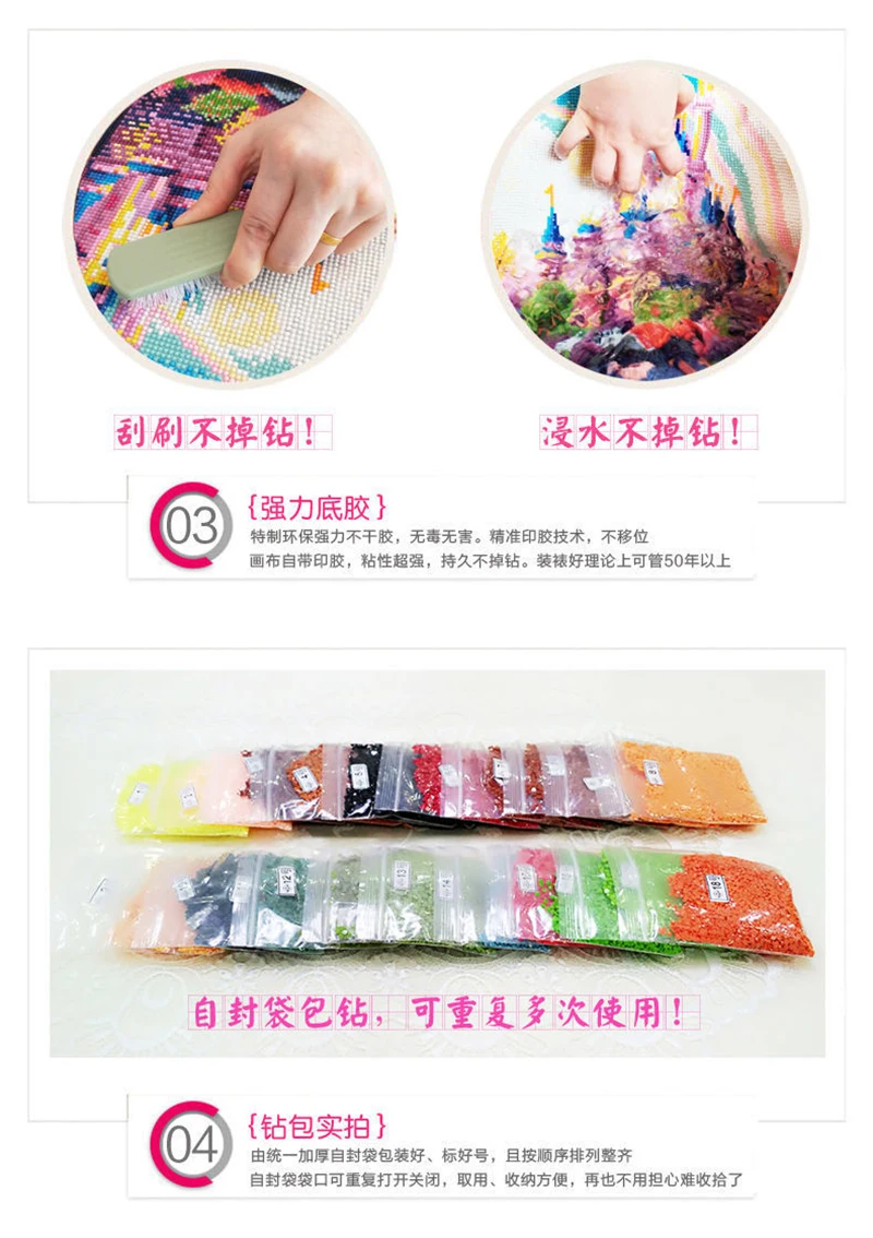 [DIY алмазная живопись шаги производства]1. Откройте коробку и проверьте алмазные инструменты.2. Посмотрите цвет алмазов из смолы, упорядоченный в порядке кодирования.3. Раскройте чертеж ленты выше, вы увидите множество символов, соответствующих цветовому кодированию.4. В соответствии с соответствующей цветовой кодировкой зажима соответствующие смолы инкрустированные алмазы.5. Предположили, что один тип алмаза из смолы завершился быстрее.6. Для того, чтобы создать идеальную картину с бриллиантами, рисунки, размещенные в одном месте, каждый ряд символов не должны оставаться приклеенными алмазами.7. Чтобы отрезать хорошую фигуру на чертежах, удерживайте сортированный массив, установленный на плоскости материала выше.8. Соединения должны быть ровными против аккуратных, не имеют трещин.9. После хорошей борьбы, остальная часть зазора на Клее соответствует символам алмазов.10. Чтобы завершить хороший Алмазный рисунок, поместите его в подборку подходящих рамок (ресторан не предоставляет рамки).[Меры предосторожности при рисовании бриллиантов]1. Перед началом операции.2. Если вы не знаете, какой цвет использовать, пожалуйста, обратитесь к таблице цветов.3. В собранном виде стразы из смолы должны быть заострены внутри линии среза, а затем обрезные части, чтобы обеспечить общий эффект.[Советы]1. Алмазы из смолы несъедобные, не позволяйте детям играть, чтобы избежать несчастных случаев, таких как глотание.2. Чертеж должен быть чистым, в противном случае, на прочность клея влияет. Если есть адгезия грязи может повлиять на них с низкой температурой твердого железа.3. Алмазы, чтобы оставаться липкой резинкой.[Характеристика алмазной картины DIY]1. Алмазная картина DIY может работать и учиться уменьшать стресс, эмоциональную регулировку, активное мышление, улучшать уверенность в себе.2. Алмазная картина DIY может быть использована для украшения семейной комнаты, чтобы сделать жизнь более гармоничной.3. DIY производство может испытать чувство достижения, способность и упорство культивировать терпение, подходит для пожилых людей и детей.4. Процесс производства прост, вы можете создать короткое время для завершения.5. DIY картина бриллианта является изысканным, чтобы дать друзьям и близким, чтобы выразить хорошие пожелания поделиться.6. С тех пор, как можно сделать DIY алмаз, можно сделать человека любого возраста, включая детей, членов семьи и так, чтобы семья была более теплой.