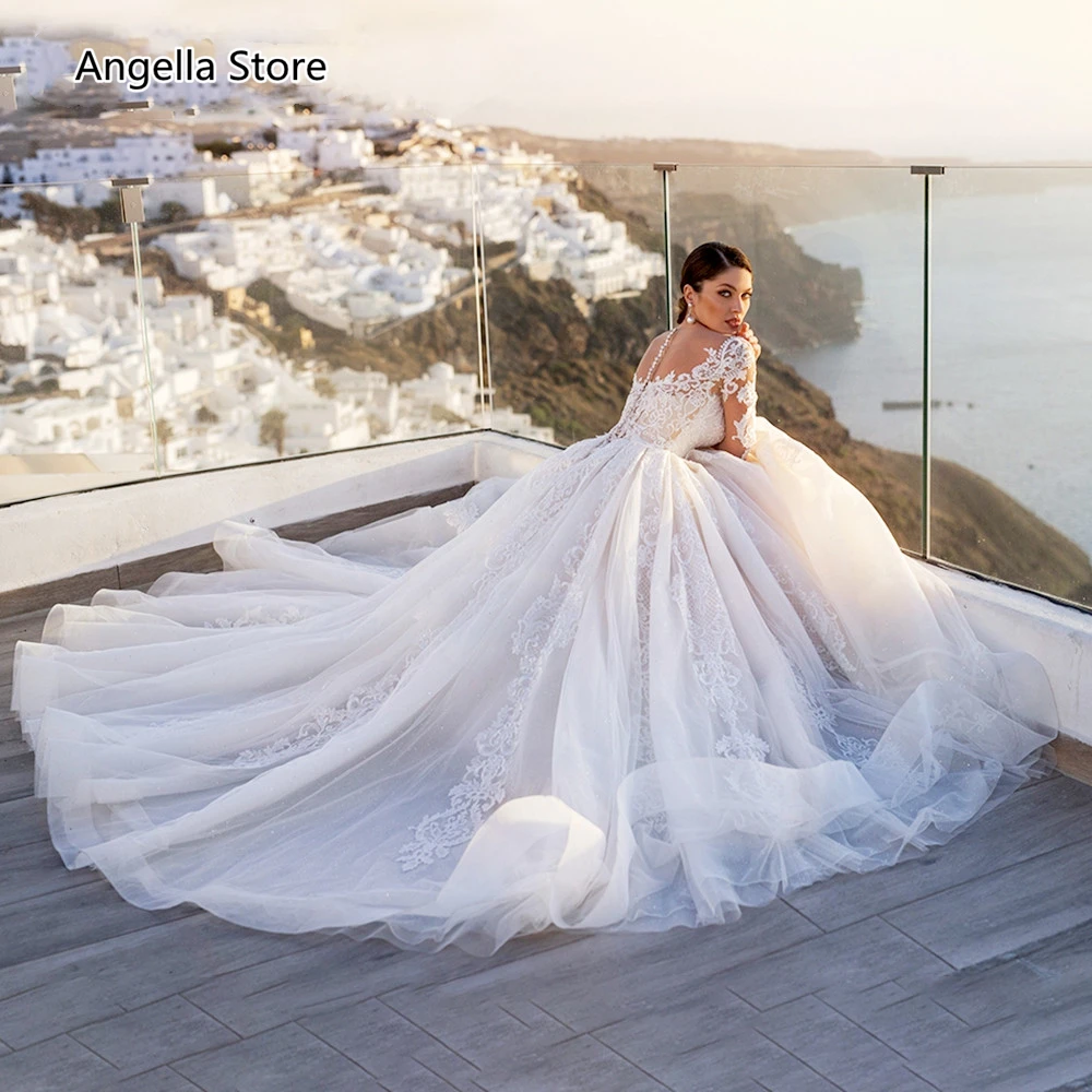 Роскошные пляжные свадебные платья в стиле бохо с длинным рукавом 34 кружевные длинные тюлевые Свадебные платья с аппликациями иллюзионные платья на заказ
