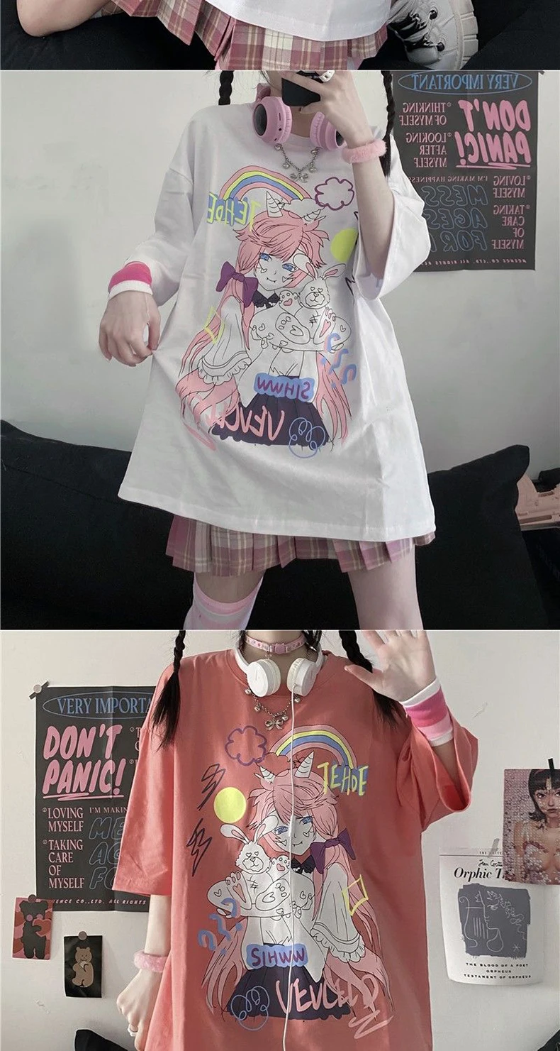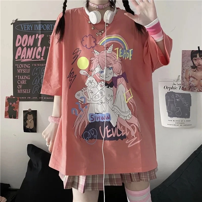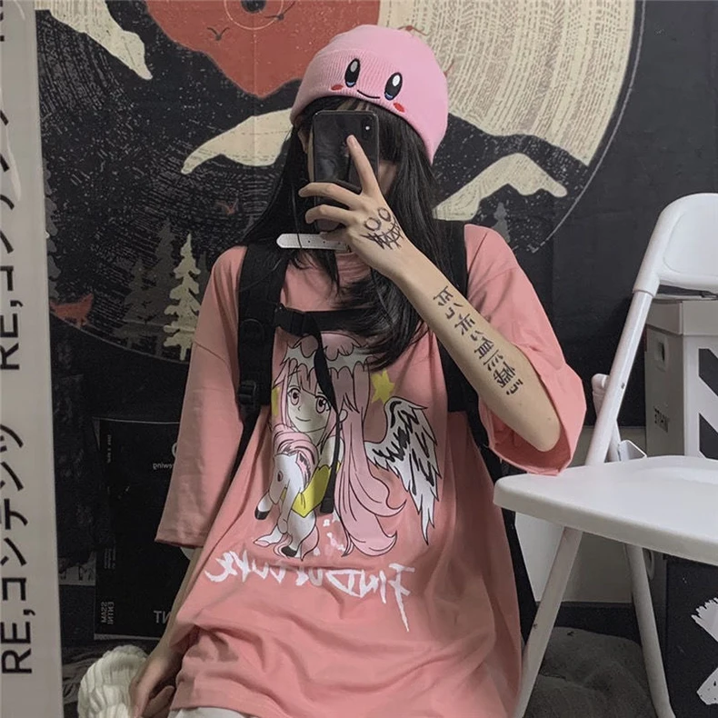 Футболка женская в готическом стиле, свободная рубашка с принтом в стиле Харадзюку, уличная одежда с коротким рукавом, одежда для девушек E