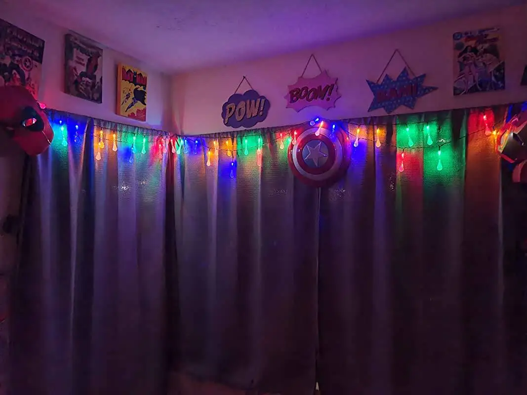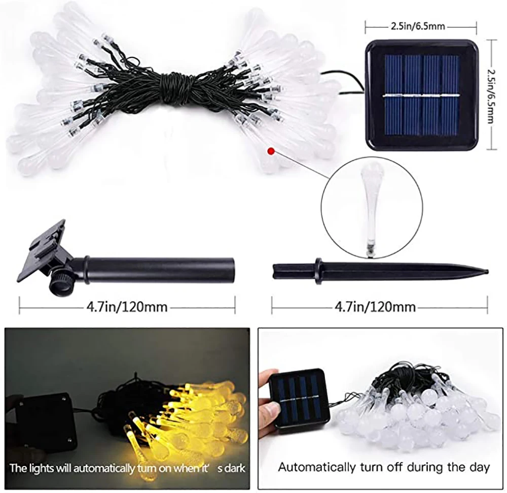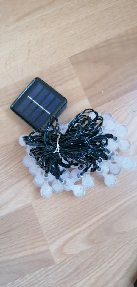 Нравится это! Я не использую их на улице, а в гостиной, чтобы дать немного света по вечерам и ночью. Они очень красивые, хорошее количество ярких (освещает, но это не солнце lol). Они идеально подходят для небольшой атмосферы! Хорошая цена, хорошая длина, и действительно очень близко! Солнечный датчик слишком велик, что отлично! Держит хорошую зарядку!