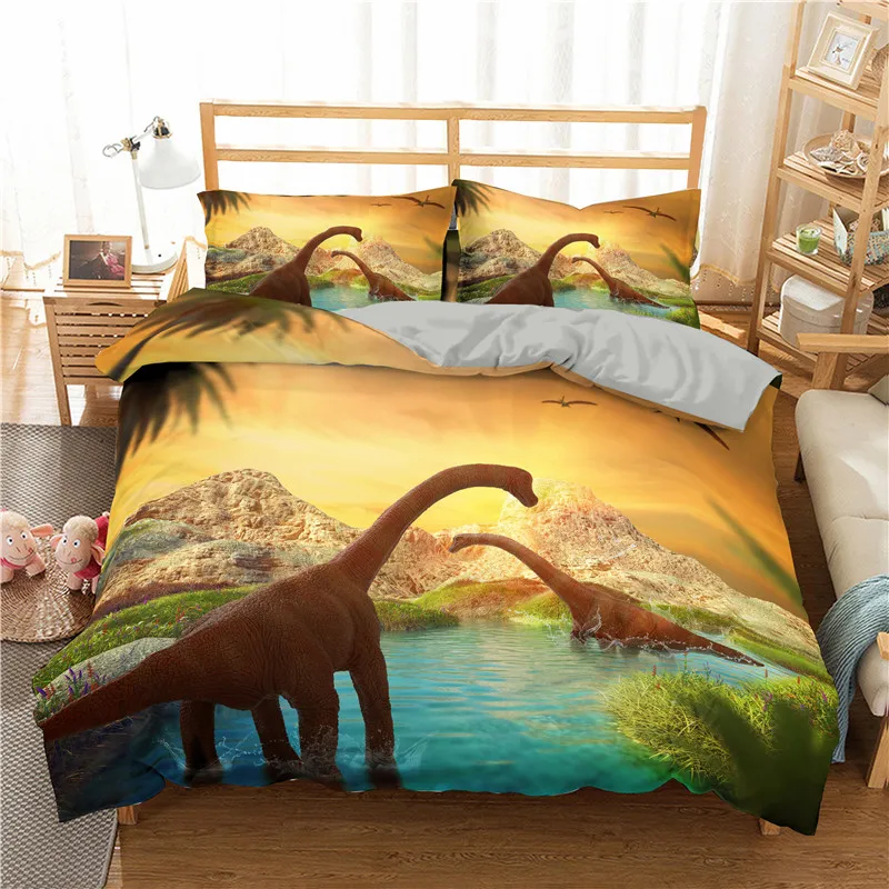 Комплект постельного белья с принтом Юрского периода, домашний текстиль, индивидуальный, 3 шт., для спальни с наволочкой, пододеяльник, односпальный, полный размер