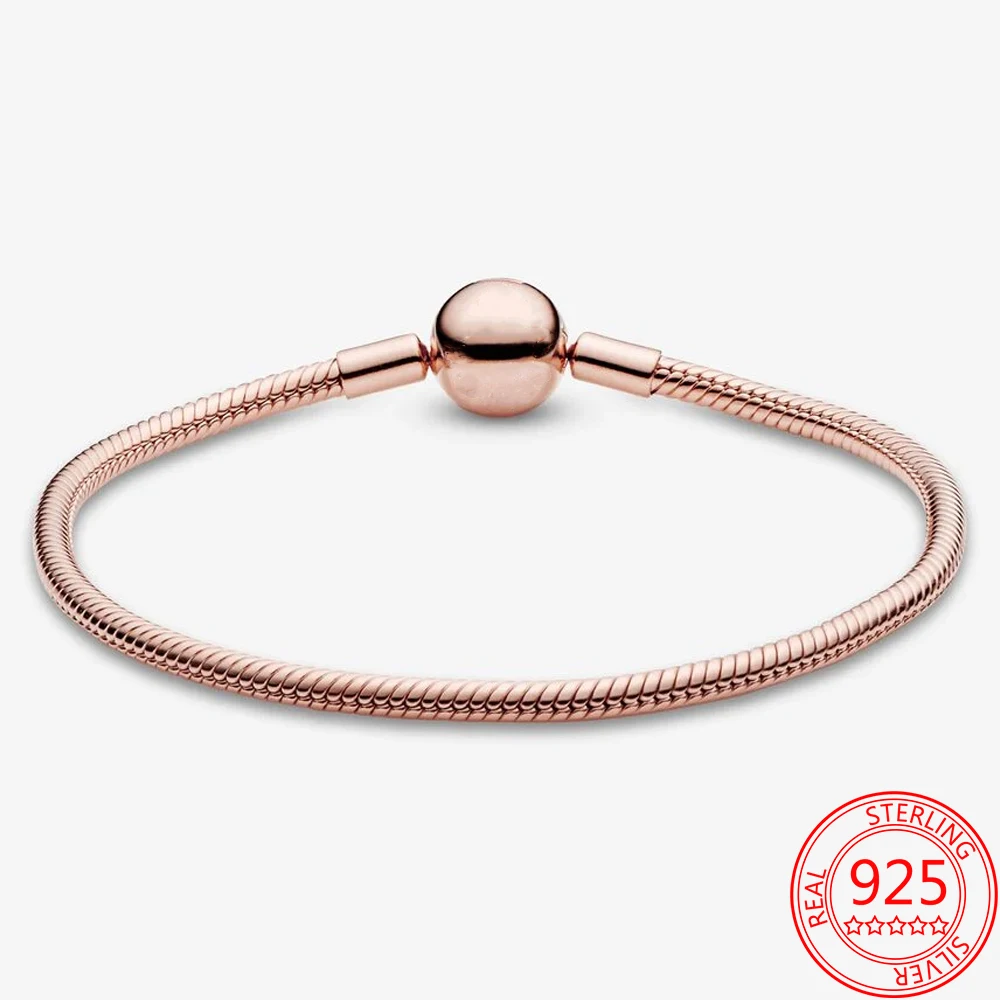 Браслет-змейка женский из серебра 925 пробы, розовое золото
