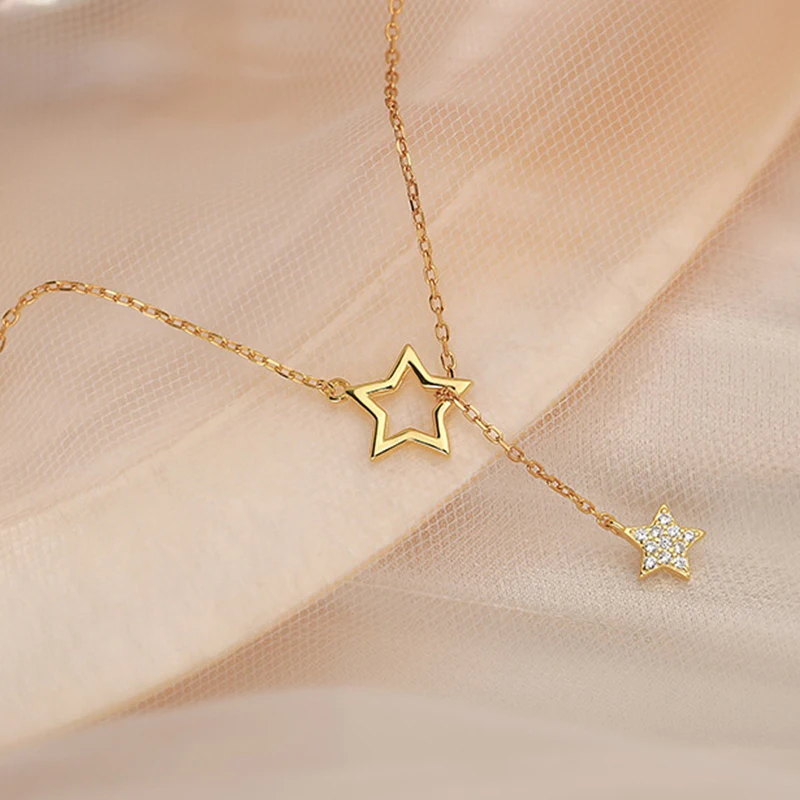 Новые модные блестящие ожерелье-чокер со звездой медное ожерелье дл...