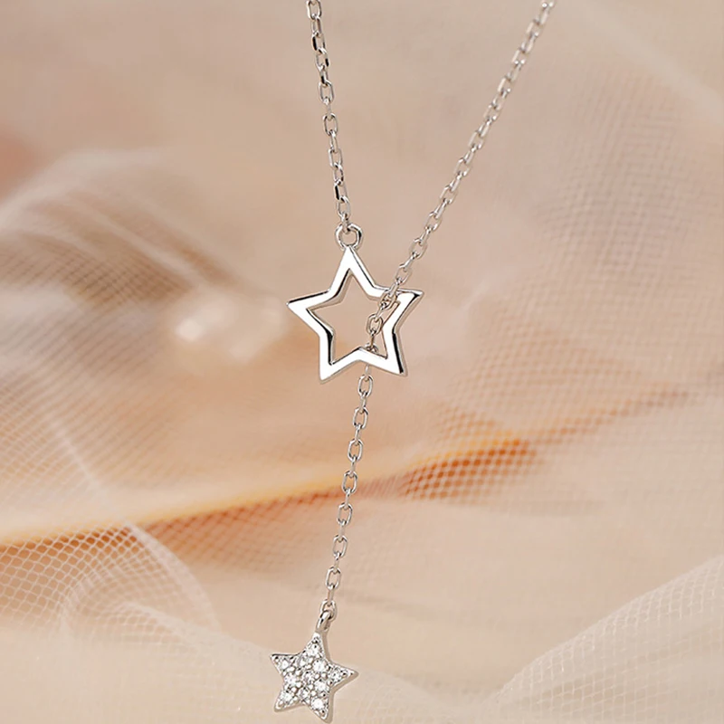 QMCOCO 925 Серебряный Нежный кулон в форме звезды ожерелье для женщ...