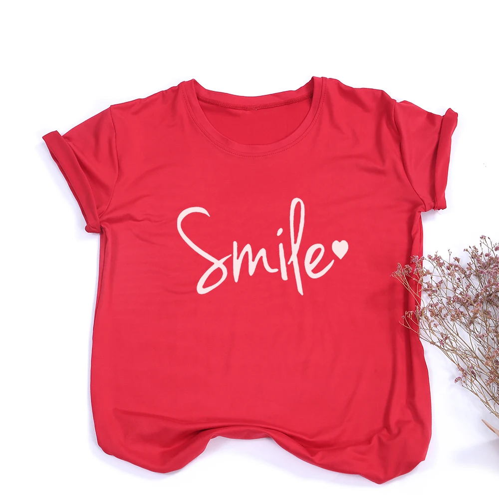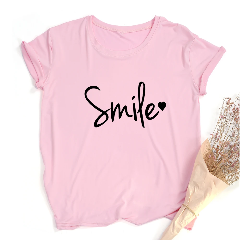 Футболка женская с коротким рукавом и круглым вырезом, повседневная хипстерская рубашка с принтом надписи Smile, одежда в простом стиле