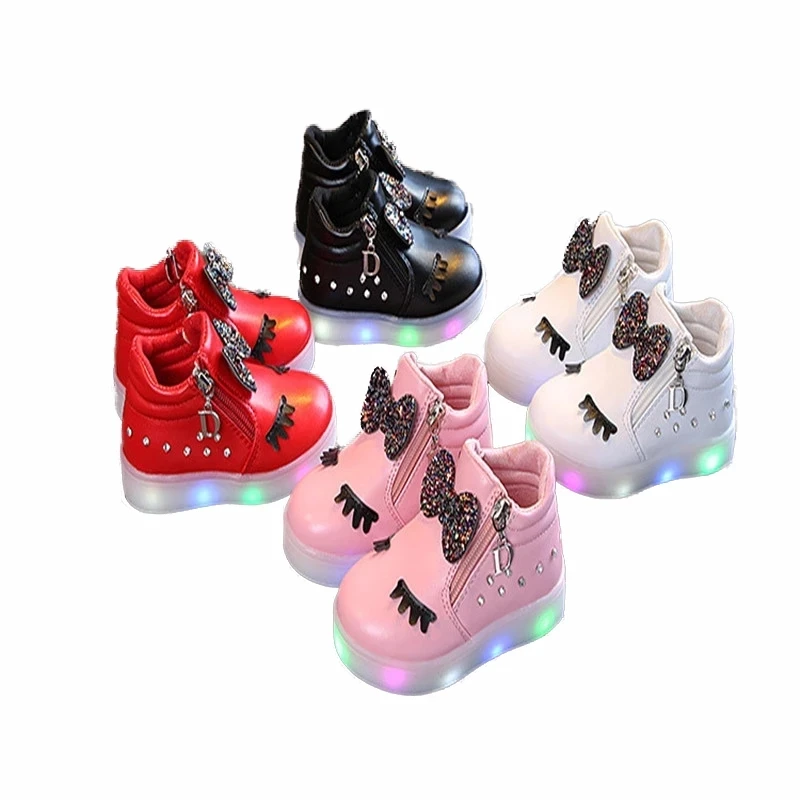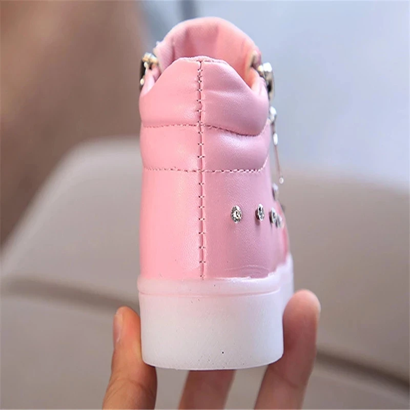Детские светящиеся кроссовки, милая обувь с бантом принцессы для девочек, размеры 21-30