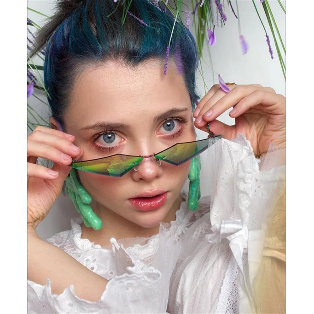 Солнцезащитные очки унисекс, в форме огнябриллианта, без оправы, волнистые, УФ 400, узкие солнцезащитные очки, уличная одежда