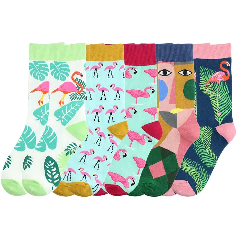 5 цветов, хлопковые Смешные парные носки с фламинго, Harajuku, креа...