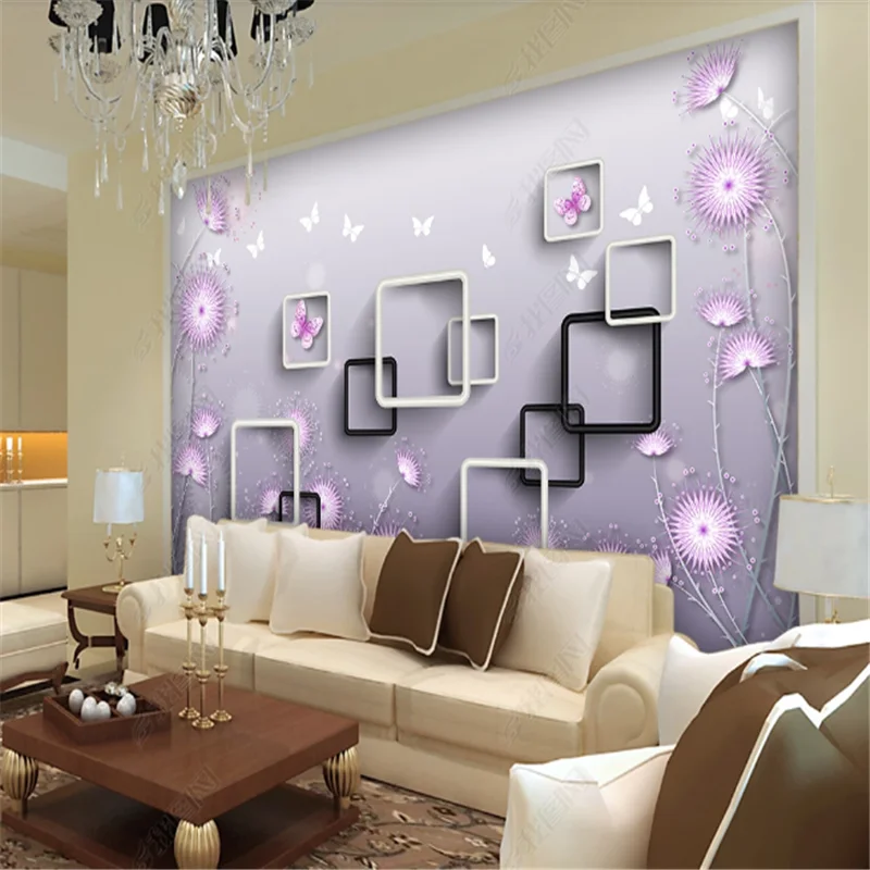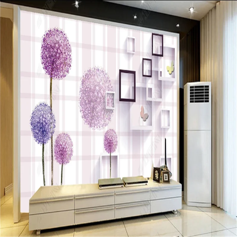 Современная Настенная бумага 3D для гостиной Романтический Фиолетовый Одуванчик квадратный ТВ фон настенная бумага домашний декор papel de parede Дисплей продукта: