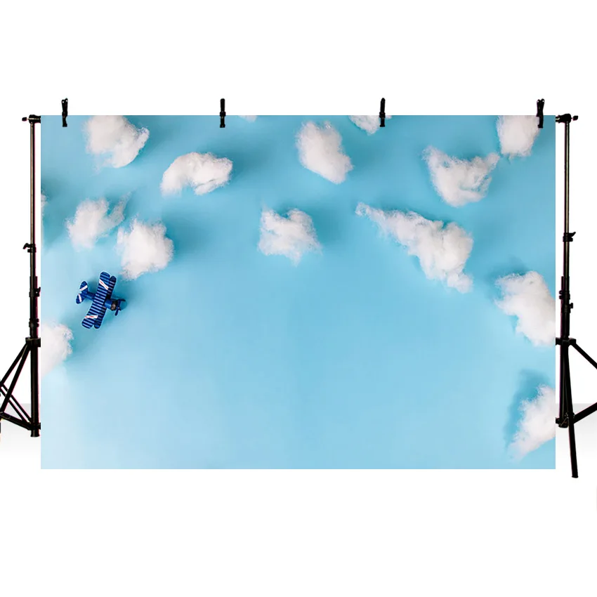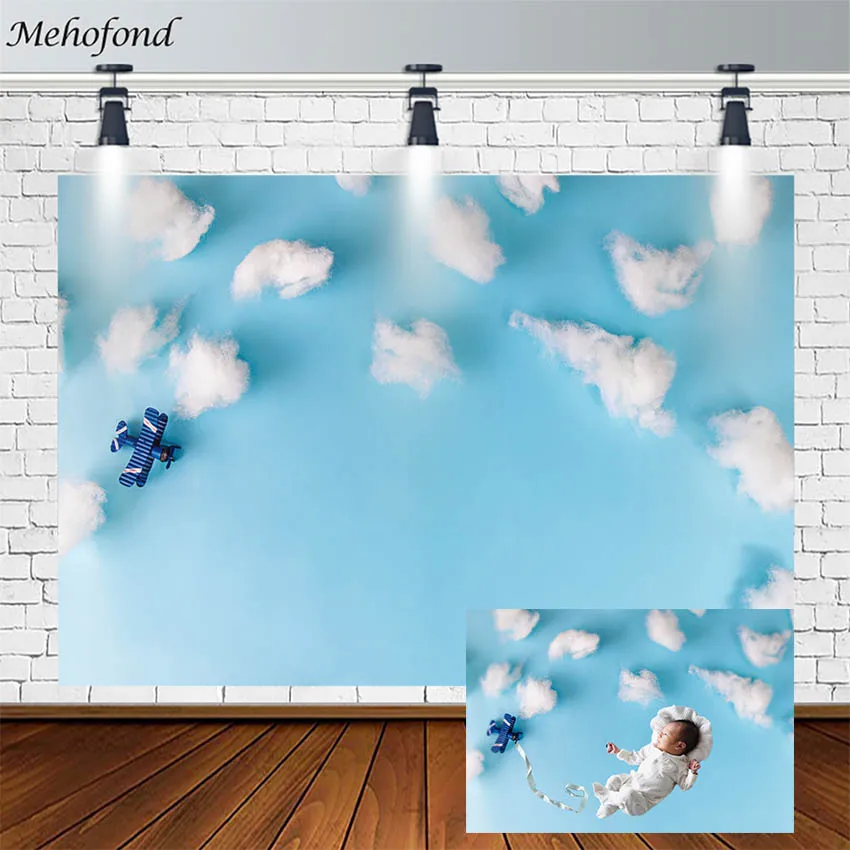 Фоны Mehofond для детского душа голубое небо облака самолет пилот мальчик Фотография фоны фотостудия фотосессия Декор фотозона