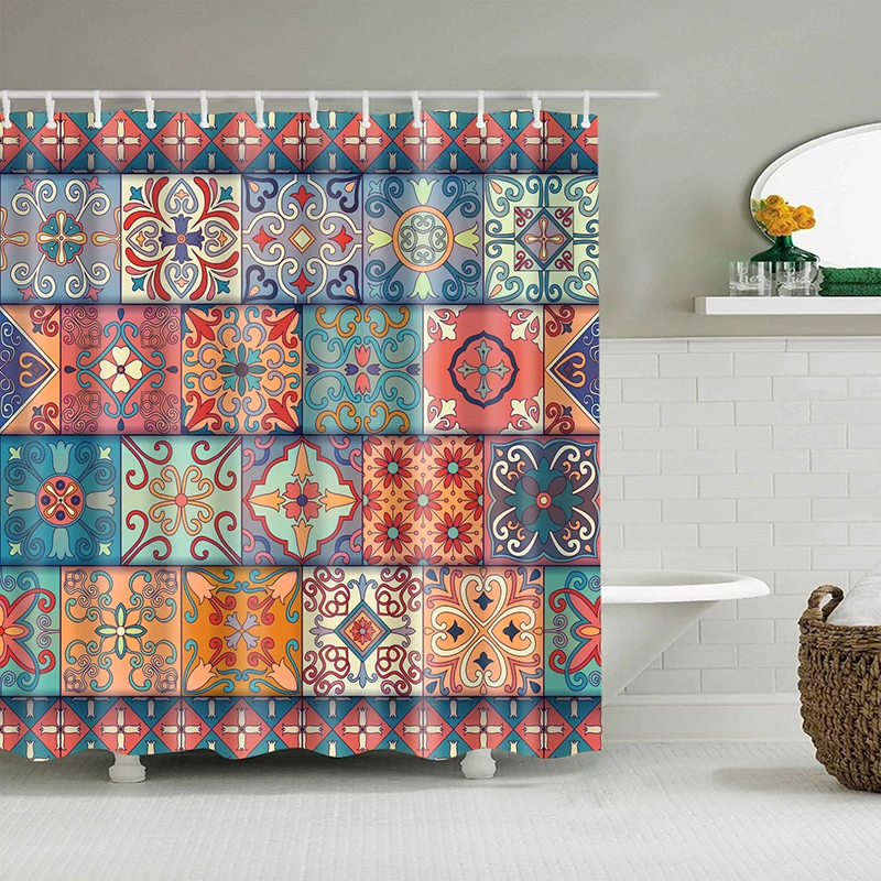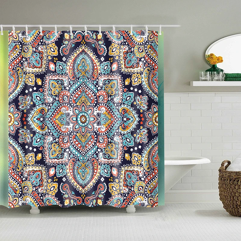 В богемном стиле с рисунком для ванной шторы занавески для душа с геометрическим рисунком цветок ванна Экран полиэфирная занавеска с рисунком для декорирования ванной комнаты