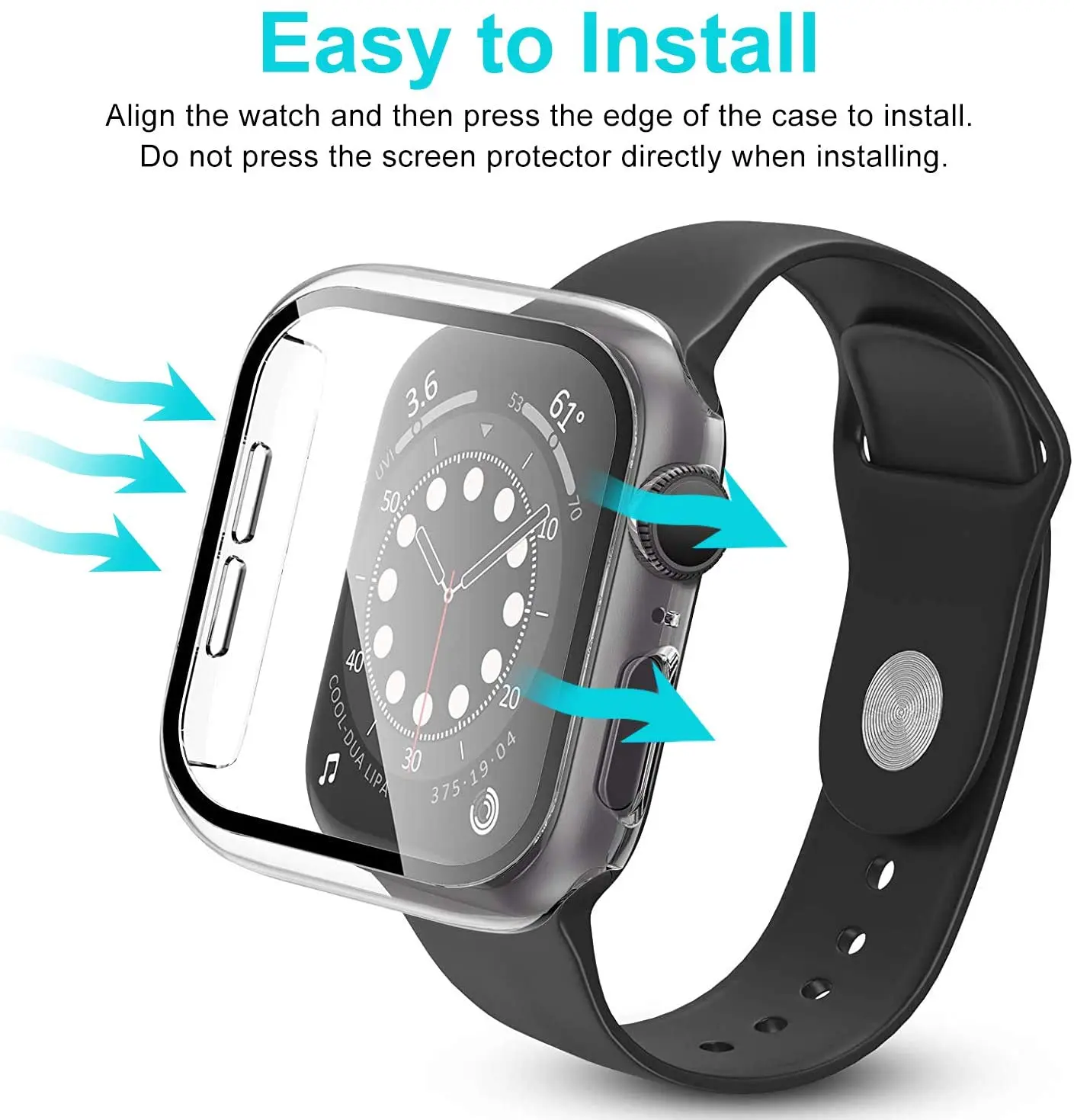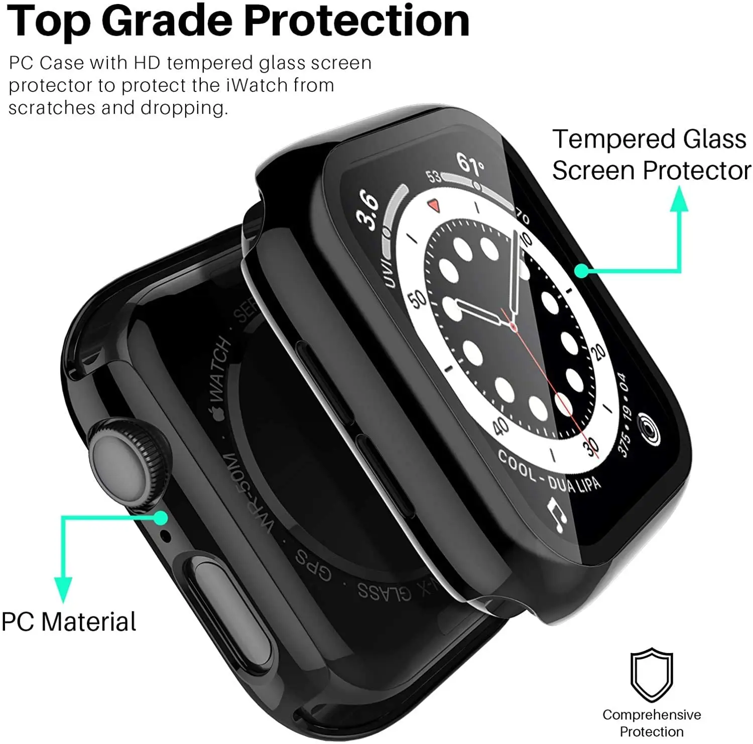 Закаленное стекло + чехол для Apple Watch 6 5 4 se 44 мм 40 мм iWatch 3 2 1 42 мм 38 мм защитная пленка + бампер аксессуары для apple watch