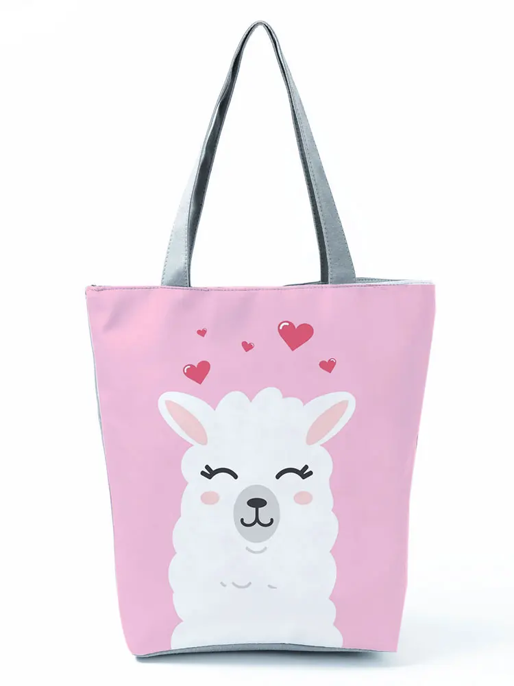 Милая женская сумка для покупок с принтом альпаки, Повседневная сумка через плечо с мультяшными животными для девочек, розовая дорожная сумка-тоут на заказ