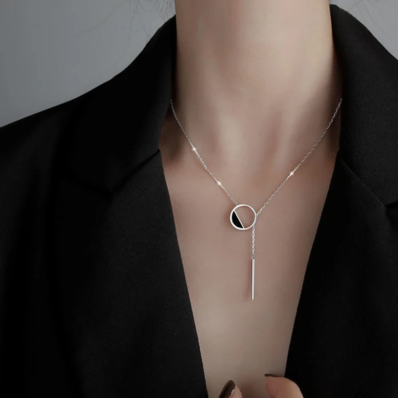 Трендовое посеребренное Двухслойное ожерелье, Круглый Блестящий Циркон, длинное ожерелье с кулоном для женщин, минималистичное ювелирное изделие