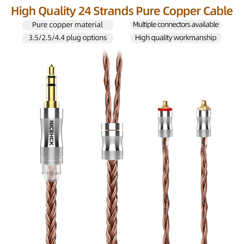NICEHCK NX7/NX7 PRO/NX7 MK3/DB3Наушники FiiO FD1/FH1s TFZ / AUGLAMOUR(Разъем NX7 может использоваться для BL-03/BL05, но оставит немного пластмассы) NiceHCK C24-4 аудио кабель 24 сердечника чистый Медь кабель для наушников провода 3,5 мм/2,5 мм/4,4 мм MMCX/NX7/QDC/0,78 2Pin для MK3 LZ A6 A7 EBX21