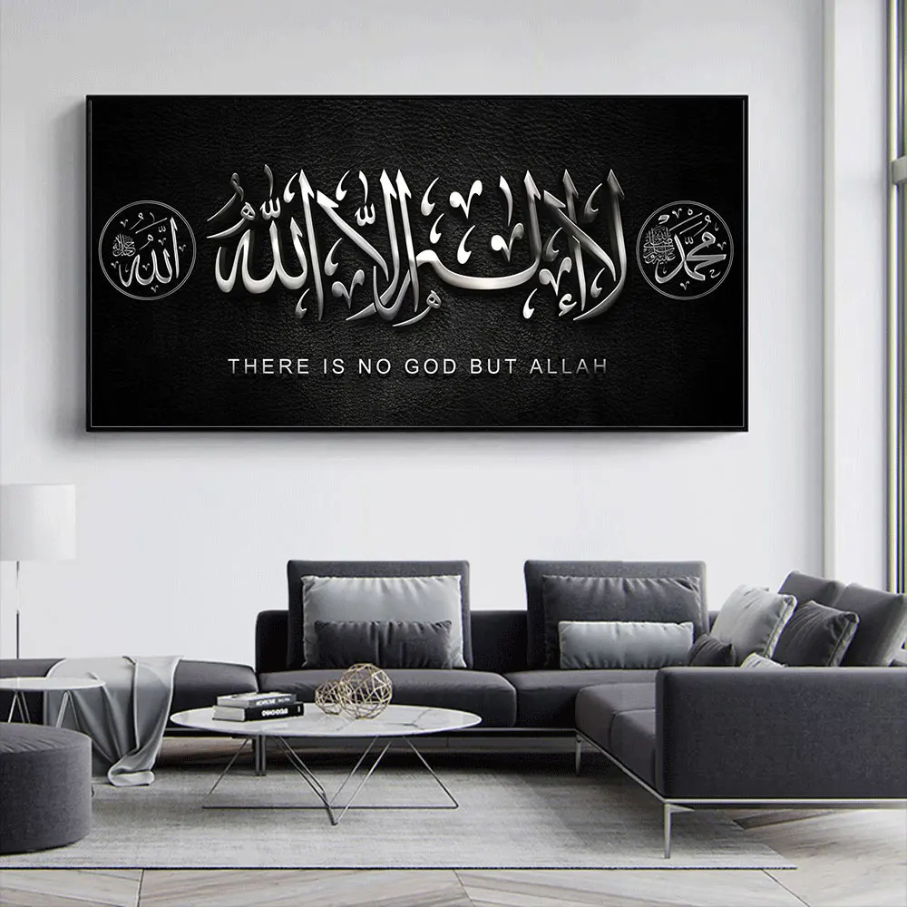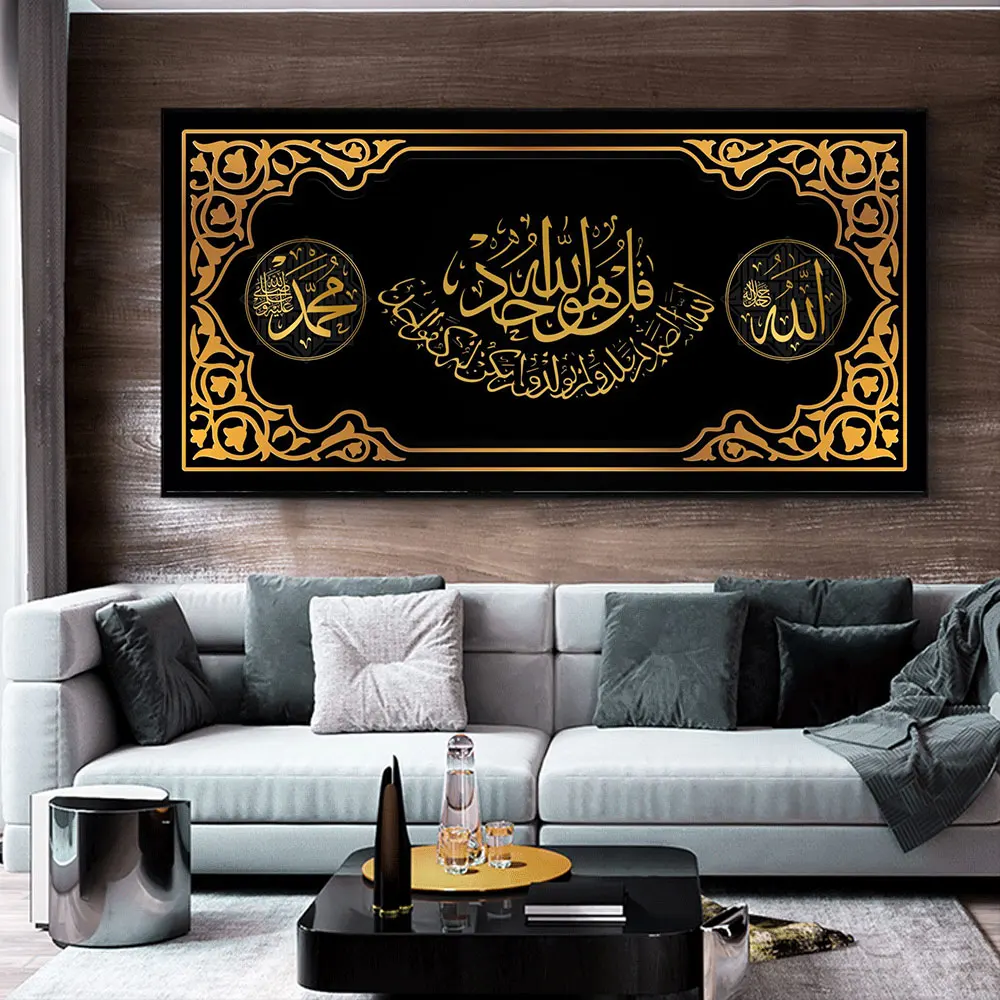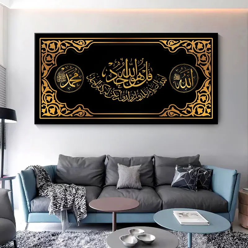 Черное золото исламский холст с каллиграфией живопись мусульманская...