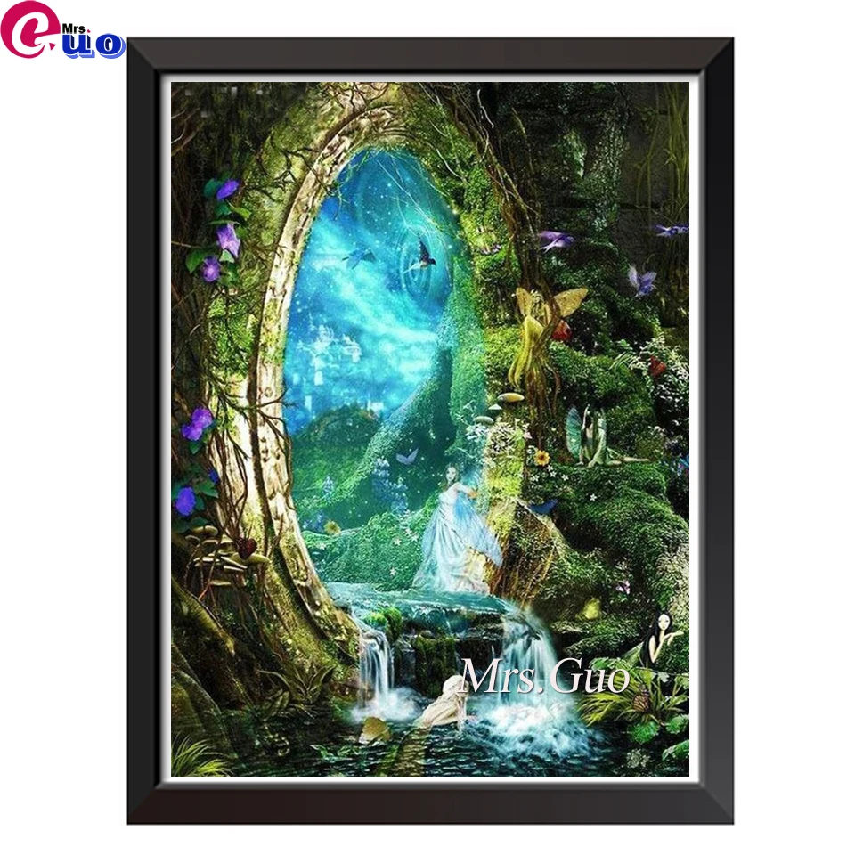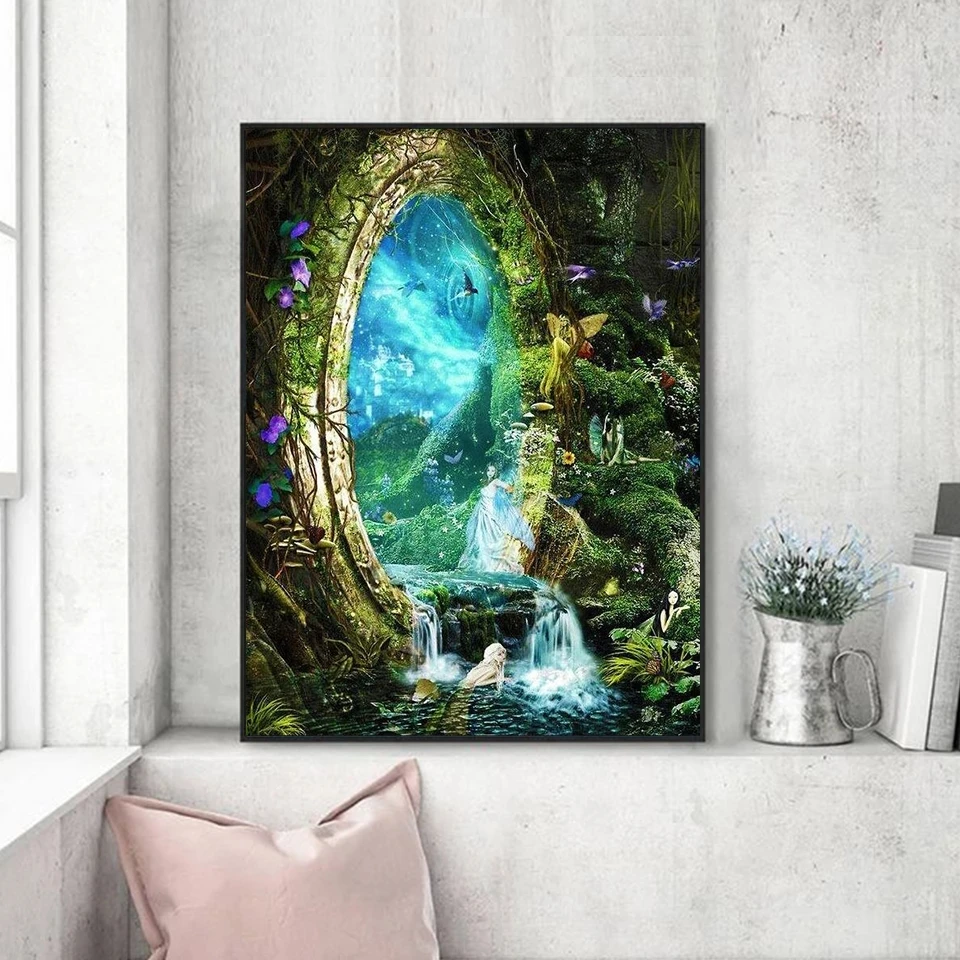 Алмазная картина 5d, полностью квадратная фантазия, водопад, картина, стразы, мозаика, эльфы, украшение на стену, алмазная вышивка