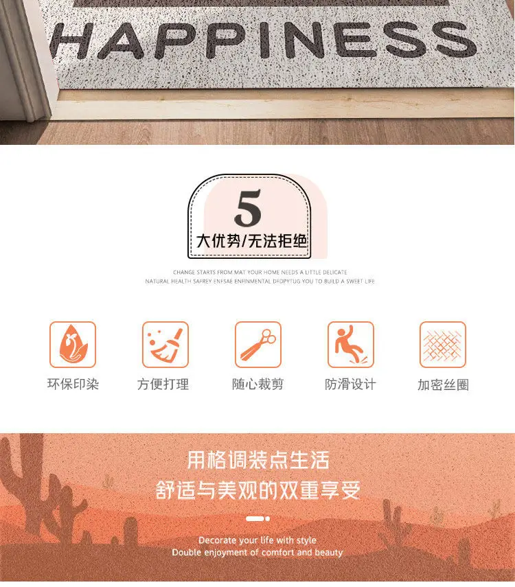 Коврик для кухни, коврик для ванной, коврик из ПВХ с шелковой петлей, нескользящий моющийся коврик для дверей на заказ, коврик из ПВХ, коврик для дома, прихожей, входной двери