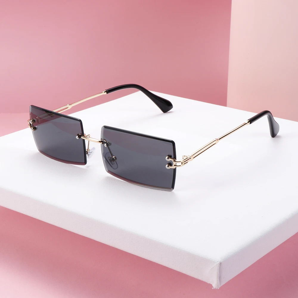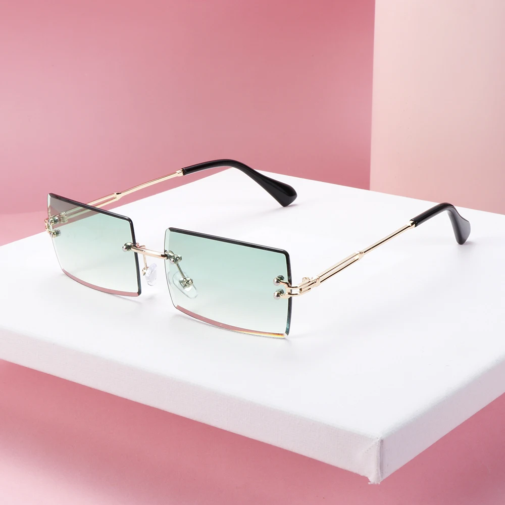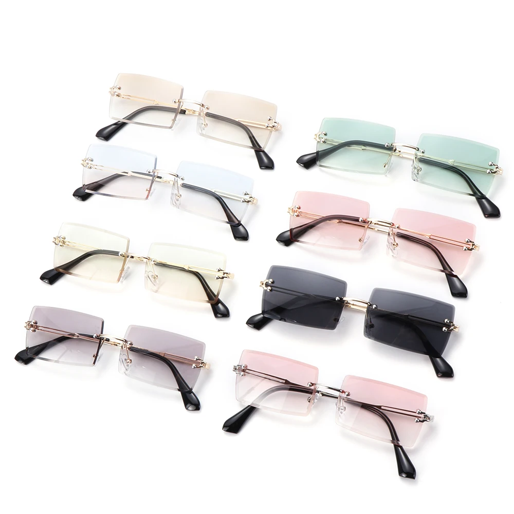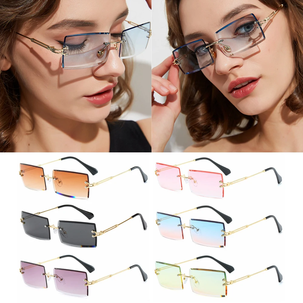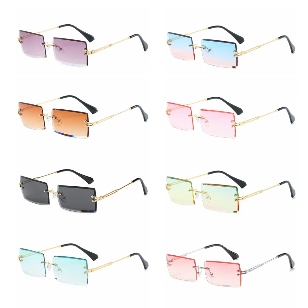 Солнцезащитные очки без оправы UV400 для мужчин и женщин, прямоугольной формы в стиле ретро, градиентные маленькие квадратные, для езды на велосипеде и вечеринок, лето 2021