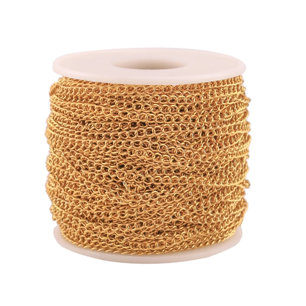 Цепочка-удлинитель из нержавеющей стали с золотым наполнителем, цепь для ожерелья, браслета, материалы для изготовления ювелирных изделий россыпью, 2 м, 3, 4 мм