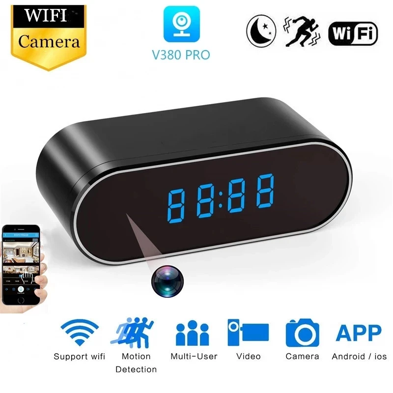 1.[Мини-камера в часах]: HD 1080P Wifi камера Будильник Обнаружение движения/циклическая запись домашняя камера наблюдения s