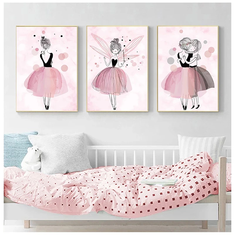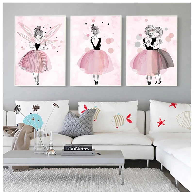 Плакаты и принты для детской комнаты в скандинавском стиле с балериной и розовой принцессой