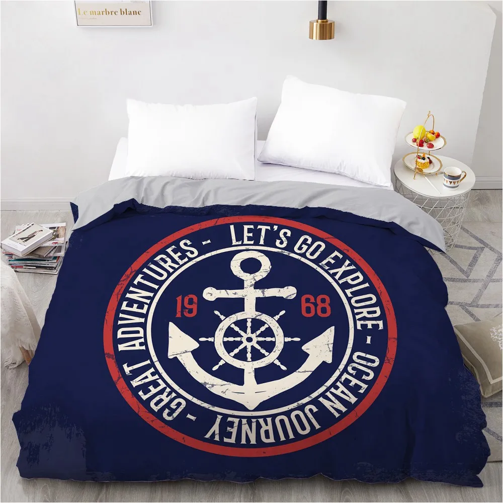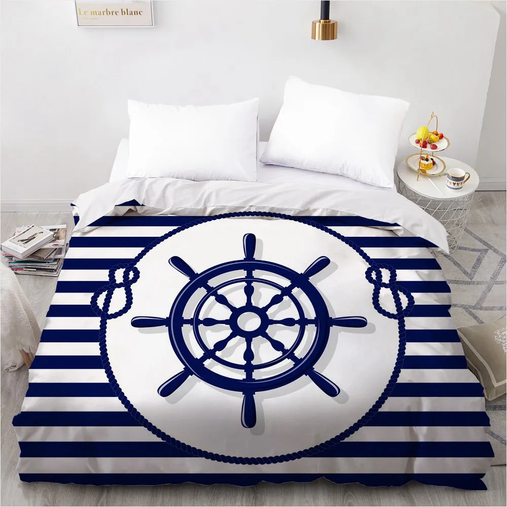 1 шт., пододеяльник с 3D принтом в синюю и белую полоску с якорем, размер 200 х22, без наволочек и простыней, домашний текстиль, одеяло