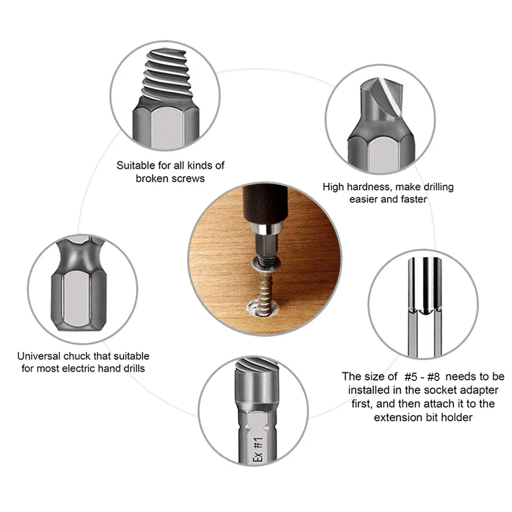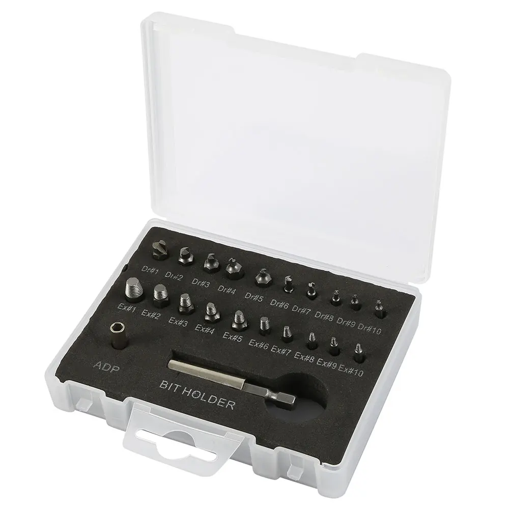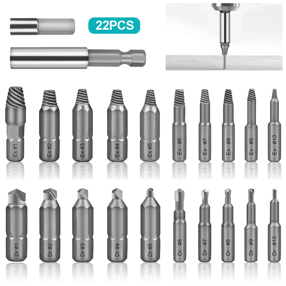 Инструмент для удаления поврежденных винтов, 22 шт., скоростной экстрактор, набор сверл, инструменты для удаления сломанных болтов, шпилек, сорванных, ремонтных инструментов