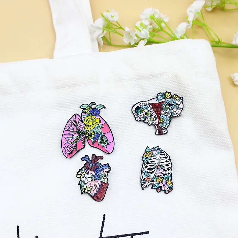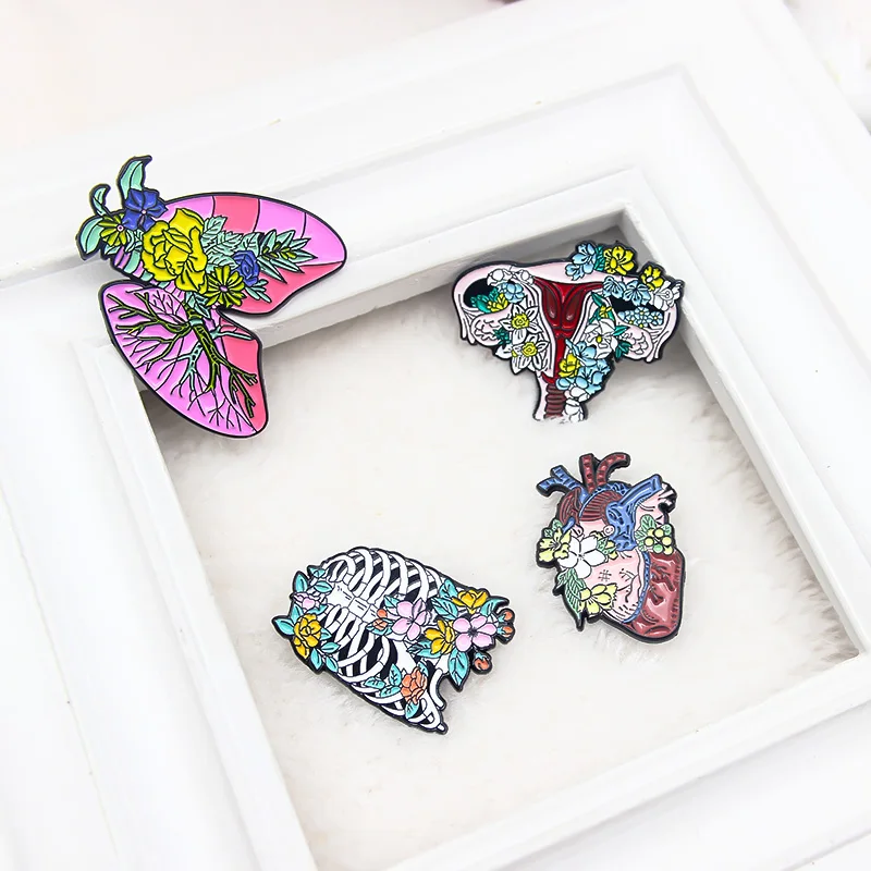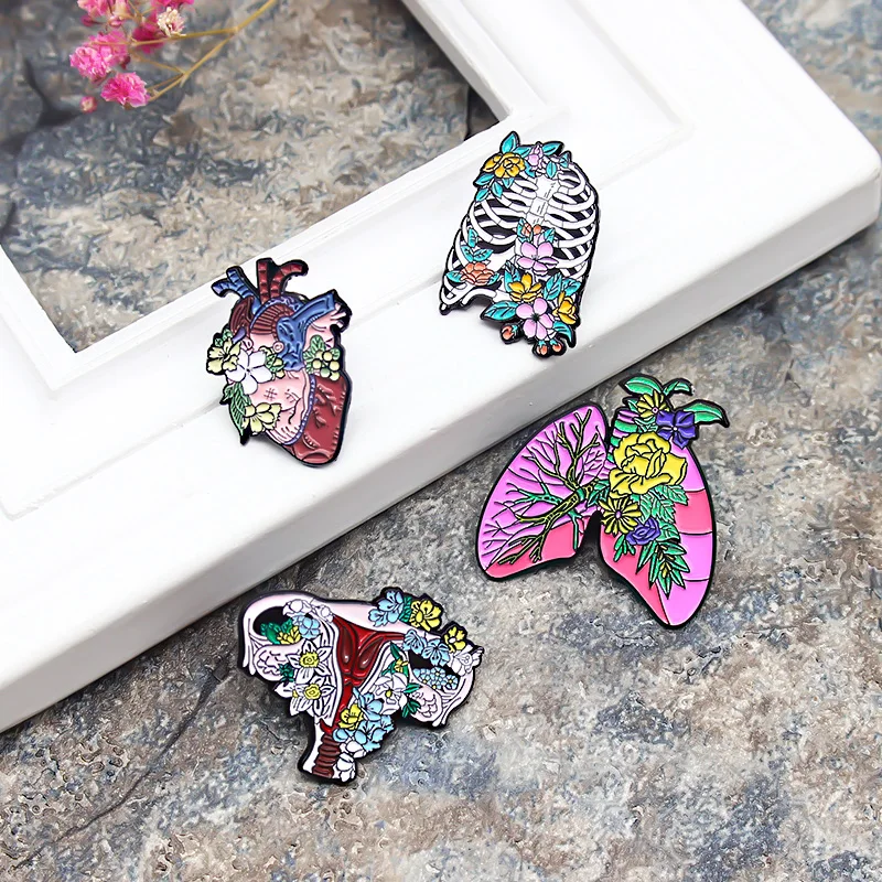 Эмалированная брошь в виде сердца, матки, грудины, легких, висцерального сосудистого скелета, кости, лацкана, булавка, растения и цветы, индивидуальный значок